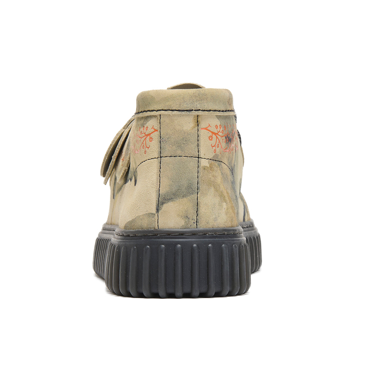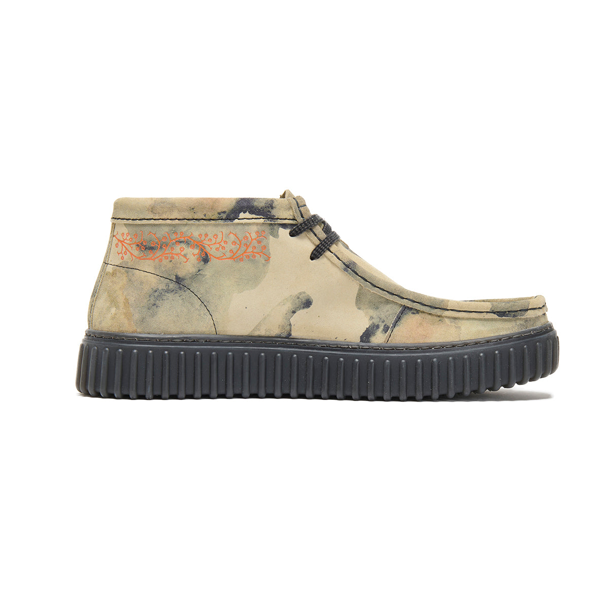 トーヒルシリーズに、クラークスの本社を構えるイギリスのサマセット州の夏至の風景にインスパイアされた「トーヒルトー」が新登場。水彩画のような色合いのカモフラージュ柄のアッパーに、サマセット州グラストンベリー周辺で見られるセイヨウサンザシの一種である「Grastonbury Thorn」を鉄分を多く含む本社近辺の土壌を象徴するオレンジ色でアンクル部分にデザインしました。フォブのひとつにはイギリスのフォークロアを象徴する「A Glade Somewhere」というフレーズが記されています。【 Contour Cushion / コンタークッション】超軽量のコンタークッションは、最適な密度のフォームで圧力を緩和し、歩行を活性化させます。人間工学に基づいたデザインで、 かかととアーチを安定させ、通気性を高めています。