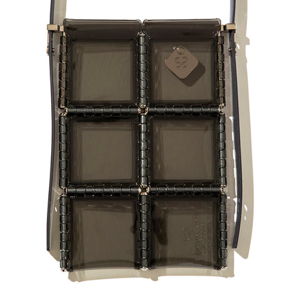 ミニマルな四角をモチーフにしたエントリーライン。より軽量化している現代の生活にフィットする、スマートフォンや小物が入るユーティリティーバッグです【素材】PVC