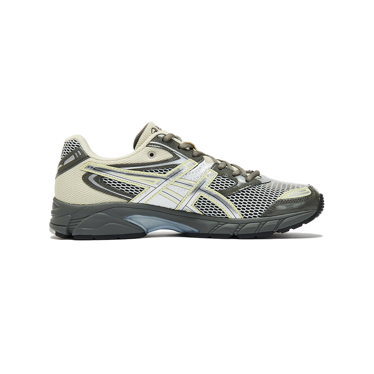 GEL-DS TRAINER 14は、2000年代後半に見られたデザイン要素を現代のライフスタイルシーンにおける快適性と汎用性を調和したモデルとして復刻したシューズです。特徴的なアッパーには、アイコニックなクォーターパネルデザインとオープンメッシュパネルを採用。