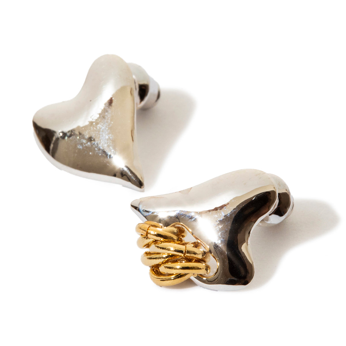 ニュアンス感のあるハートモチーフにコイルのアクセントがポイントのピアスです。かわいらしくなりすぎないように、小ぶりサイズで厚みもおさえて使いやすいデザインに仕上げています。