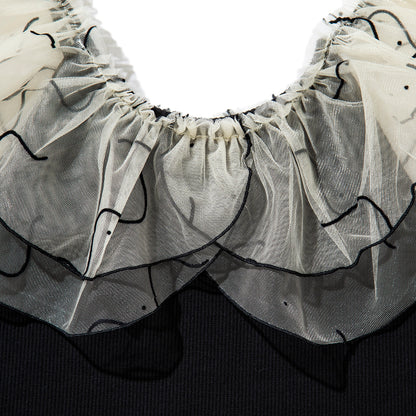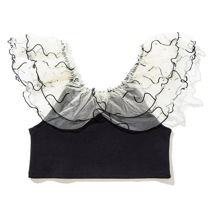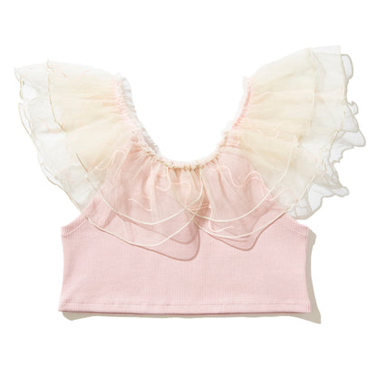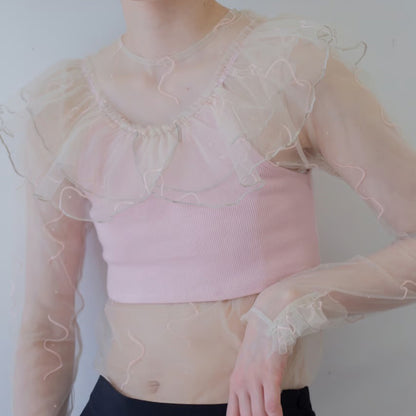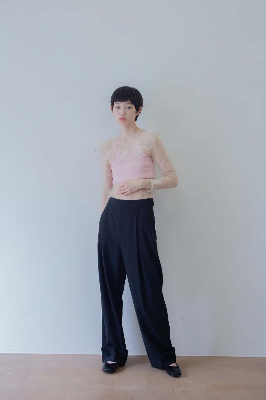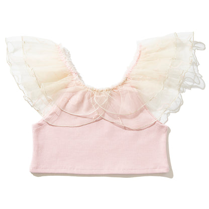 オリジナルのフロッキープリントを施したチュールをふんだんに使ったビスチェ。1枚で着てコンパクトキャミとしても、重ね着でも着れます。