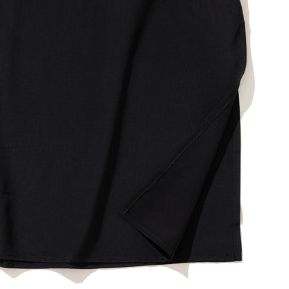 シワになりにくいサテンを選び、光沢もほどよいものを選んでい