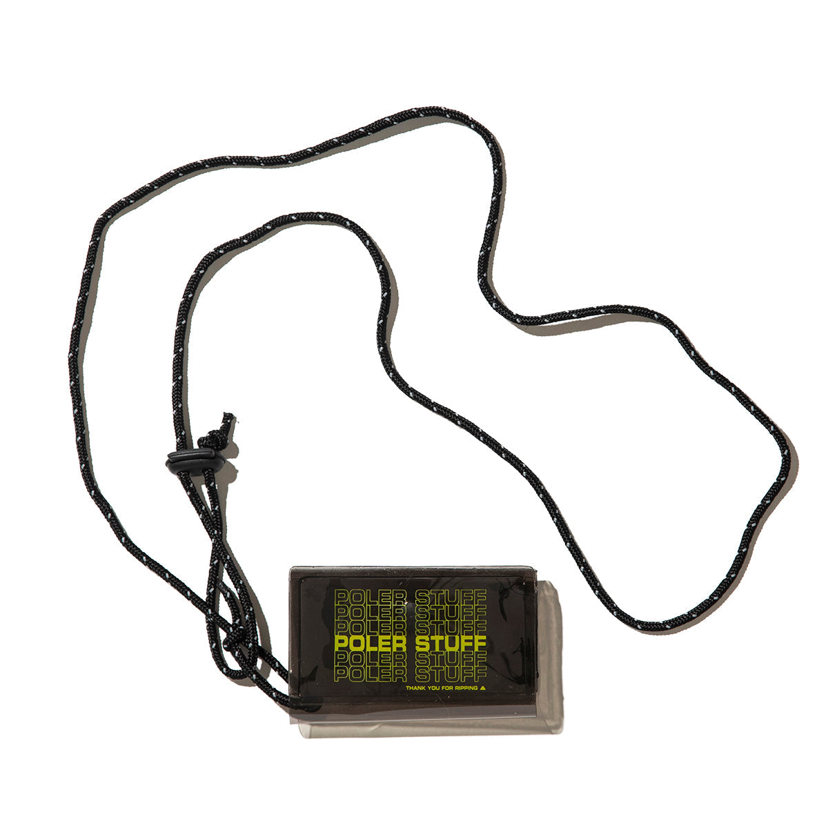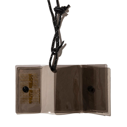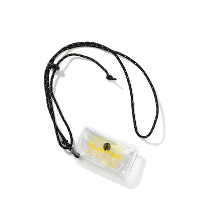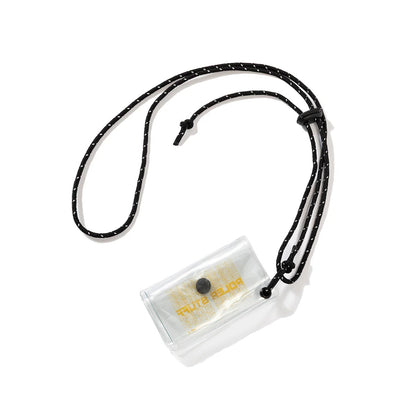 コイン類はもちろんカードなどもバッチリ収納できるPVCポーチ。専用のストラップを備えており、首から下げてアクセサリー代わりに使うことも可能。