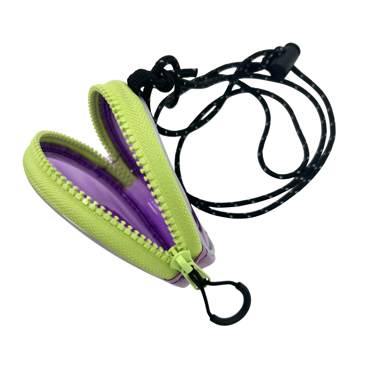 Maiko Miyasaka氏、描き下ろしのポップかつチャーミングなイラストを落とし込んだPVC素材の丸型のポーチ。ストラップが付いているので、アクセサリー代わりとしても使用できるアイテム。