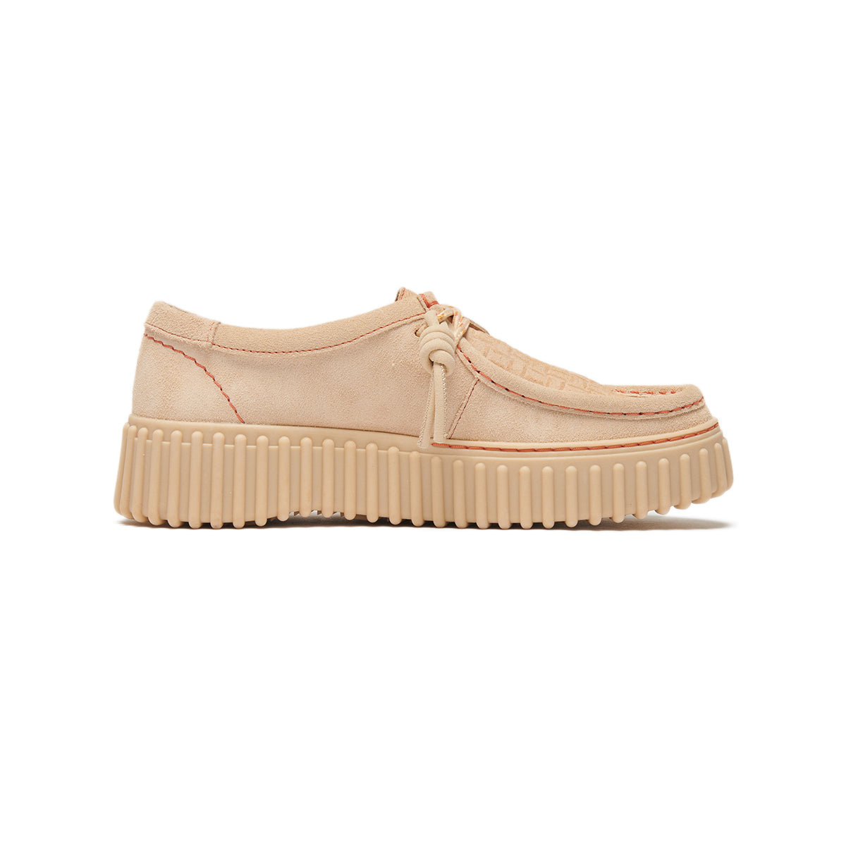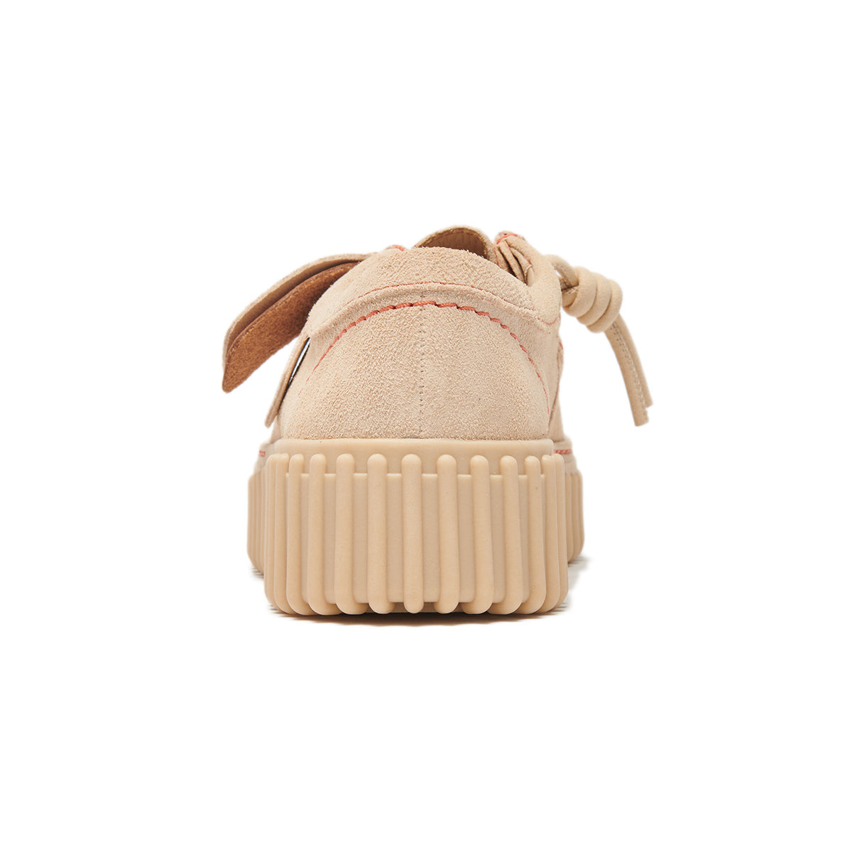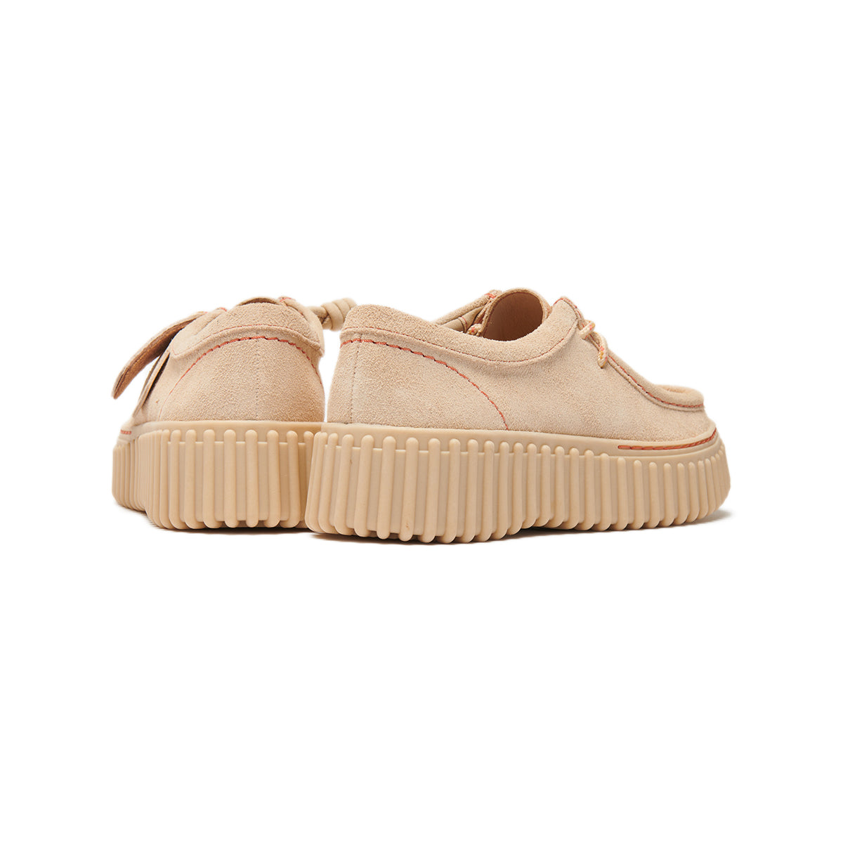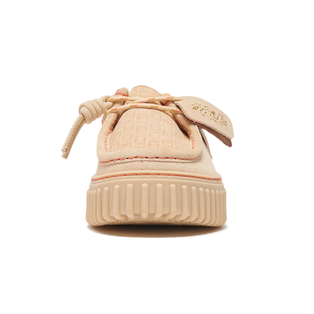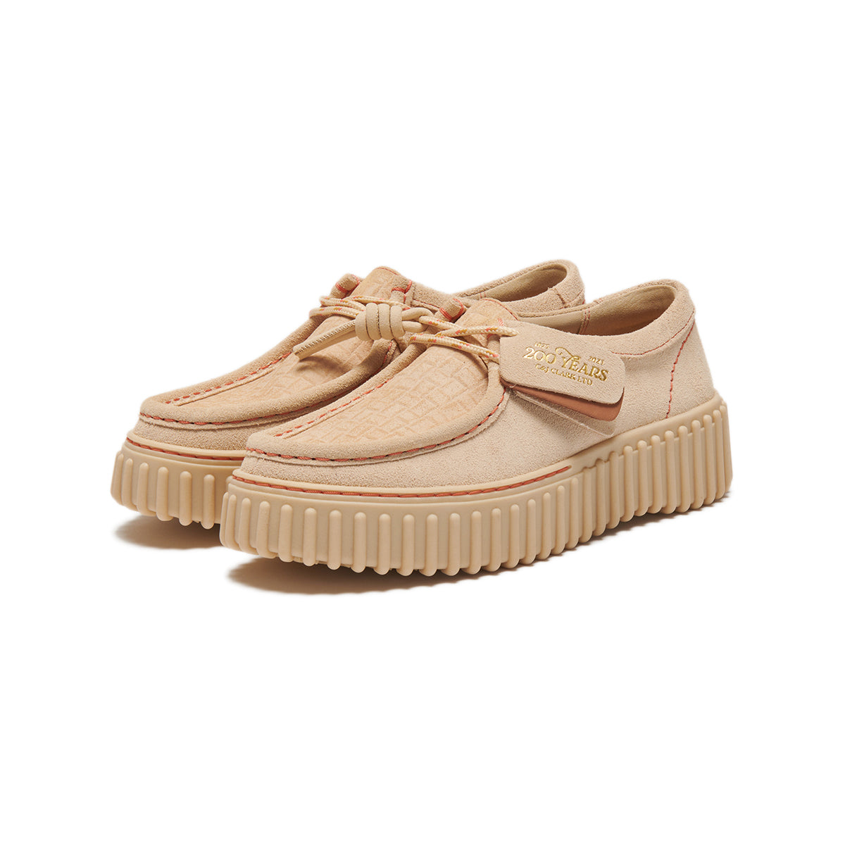 2025年に200周年を迎えるクラークスから新作コレクションが登場。名作ワラビーからインスパイアされたTORHILLシリーズ。Torhill Beeは、クラークスのアイコンであるWallabee のアッパーに、90年代に誕生したBig Gripper (ビッググリッパー) のチャンキーソールを組み合わせました。目を引くリブのTPRアウトソールは軽量でありながら、耐久性もあり快適な履き心地。靴裏の大きなClarksのロゴも当時のデザインに影響を受けています。クラークスのDNAやクラフトマンシップは勿論、新たにクッション性や軽量性、プレミアム感を体現しました。【素材】アッパー:スウェード、アウトソール:TR