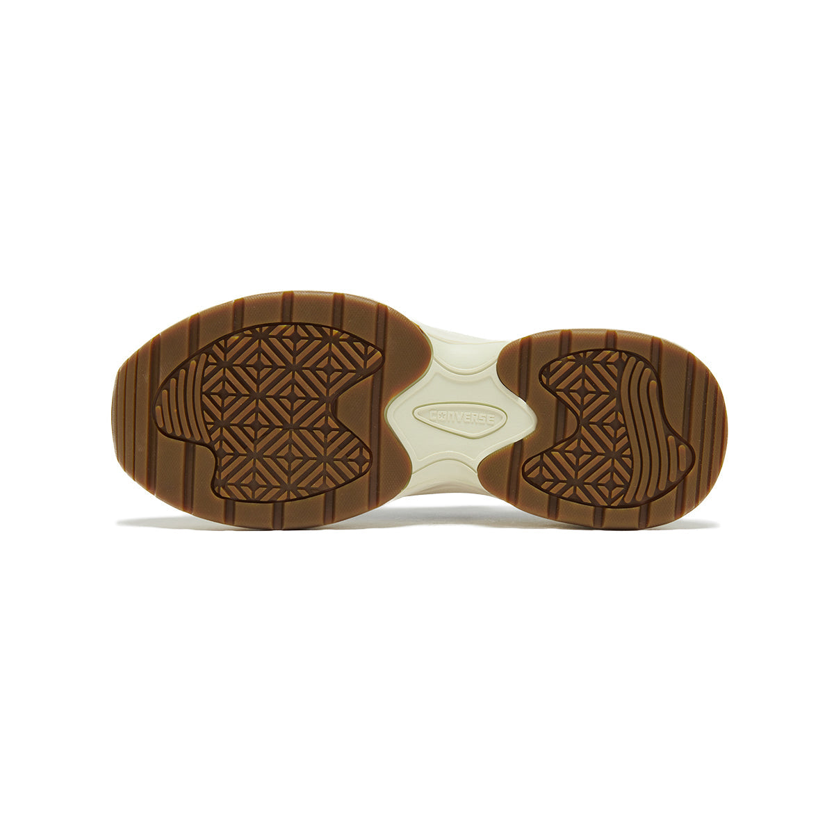 オールスターと90年代のトレーニングシューズをモチーフにしたボリュームのある厚底ソールを合体し、流線的でレトロスポーティな印象に仕上げたサージトレーナーのカラーアレンジモデル。キャンバス素材のアッパーに、光沢のあるハトメやコットンのシューレースを採用し、コンバースらしいクラシックな印象を演出。