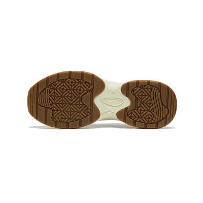 アッパーにラバーの仮底を付けない設計を採用し、厚底ソールでボリュームのあるデザインながらも軽量化を実現。