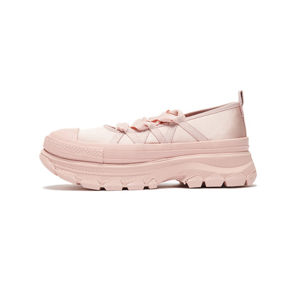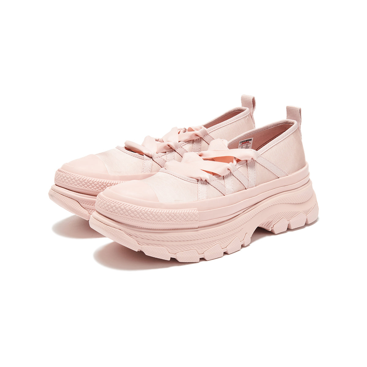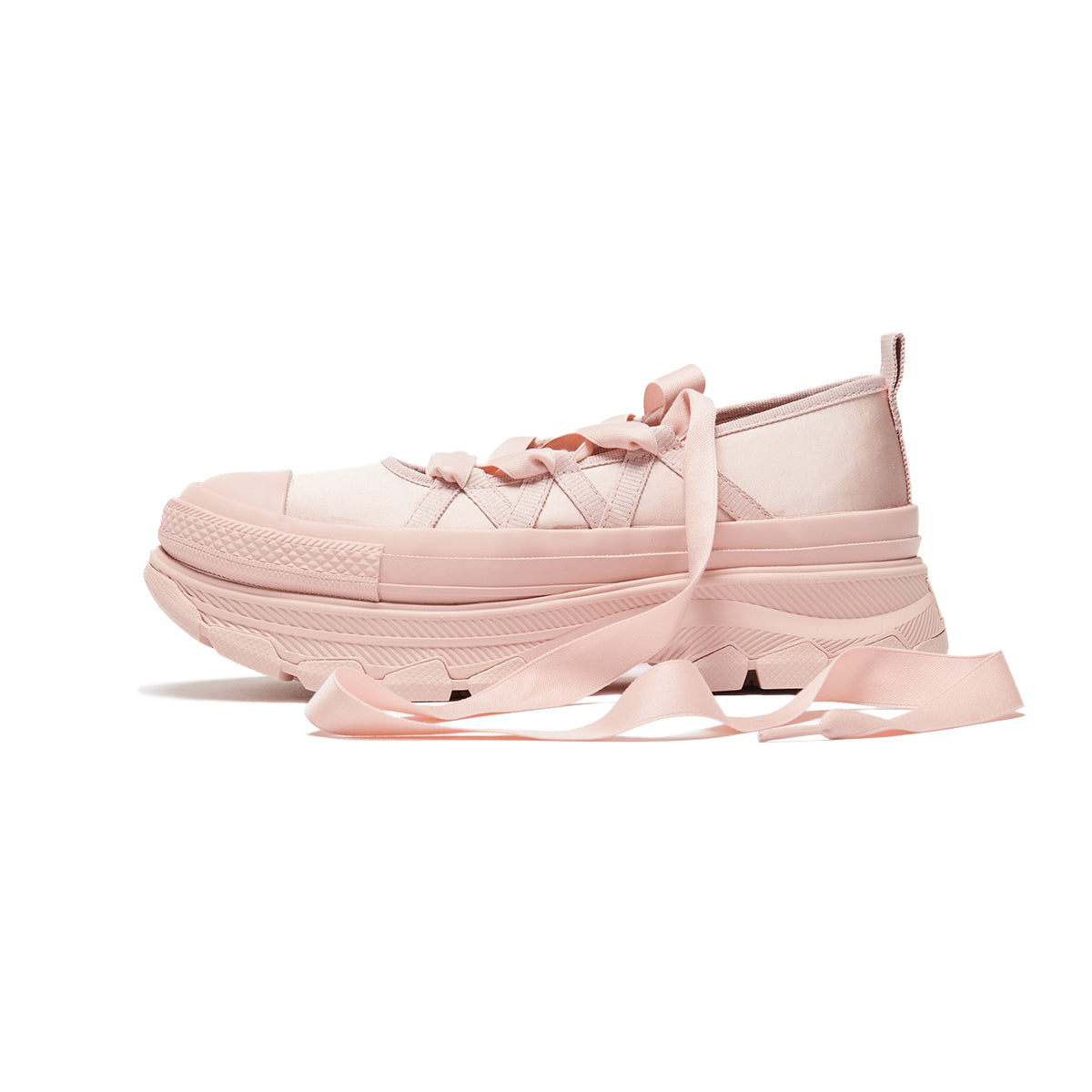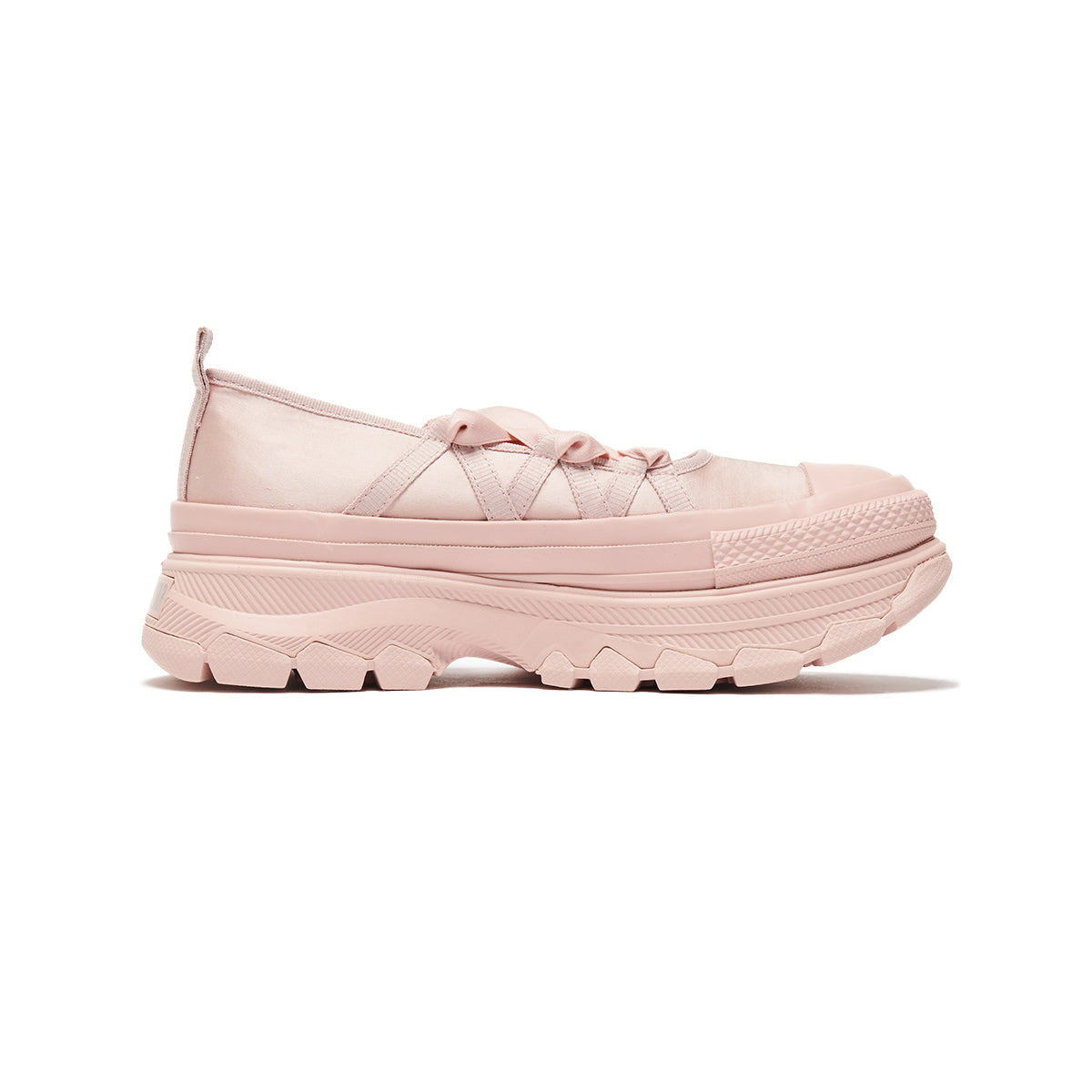 バレエシューズをモチーフにした、トレックウエーブのパターンアレンジモデル。トレックウエーブの厚底ソールに、バレエコアのデザインを融合。