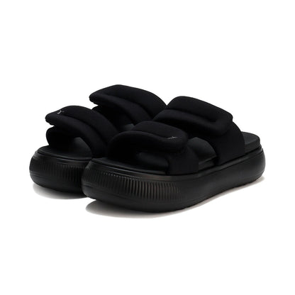 厚底のシルエットがフェミニンでかわいらしい雰囲気を演出します。足入れしやすいスライドタイプのアイテムながら、柔らかい素材を使用したベルト部分が優しく足を固定。快適な履き心地を提供する一足です。
