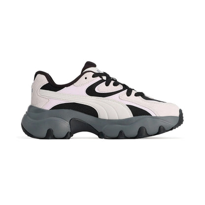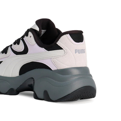 パルサーライトは、2000年代初頭の雰囲気と現代のトレンドを融合させたスニーカー。つま先からかかとにかけてなだらかに高くなっているウェッジソール、軽量で快適な履き心地、合成素材のアッパー、プーマロゴを採用。