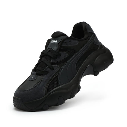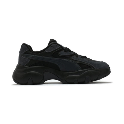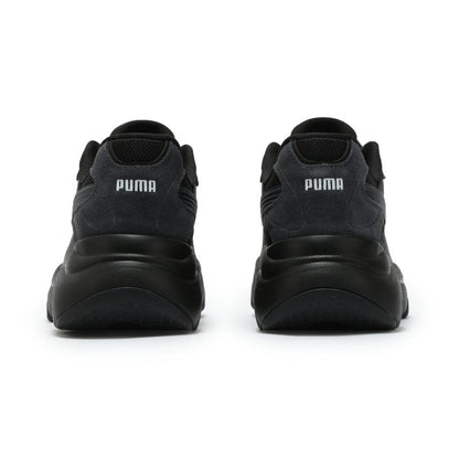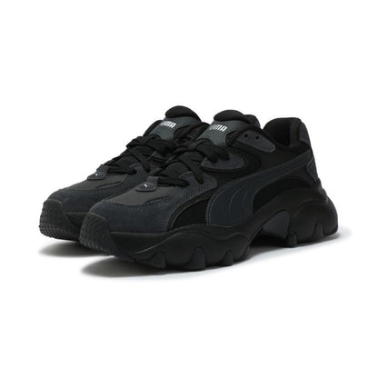 パルサーライトは、2000年代初頭の雰囲気と現代のトレンドを融合させたスニーカー。つま先からかかとにかけてなだらかに高くなっているウェッジソール、軽量で快適な履き心地、合成素材のアッパー、プーマロゴを採用。