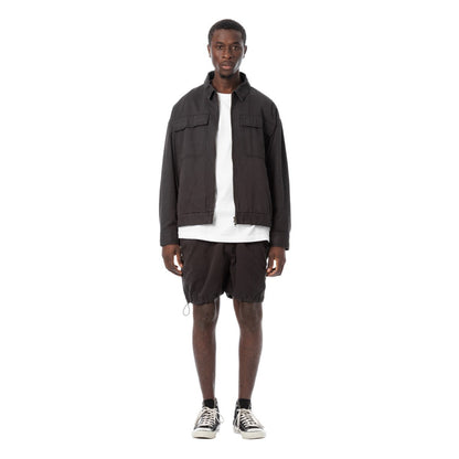 製品硫化染後にバイオ加工を施した、ヴィンテージライクなチノジャケットです。生地の特徴は硫化染めならではの深みある独特な色味と、バイオ加工による色落ちやアタリなどのリアルなユーズド感が出てるのが特徴です。● 裾脇はゴム入り