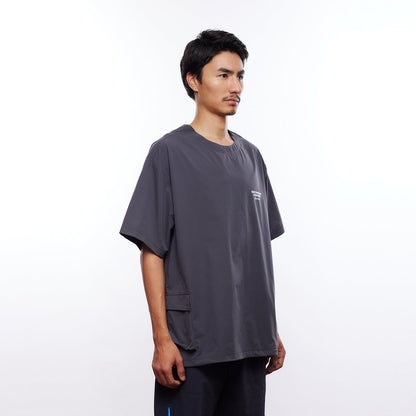 撥水性のある4WAYストレッチ生地を使用したユーティリティTシャツ。両脇に大きさの違うユーティリティポケットが付きます。