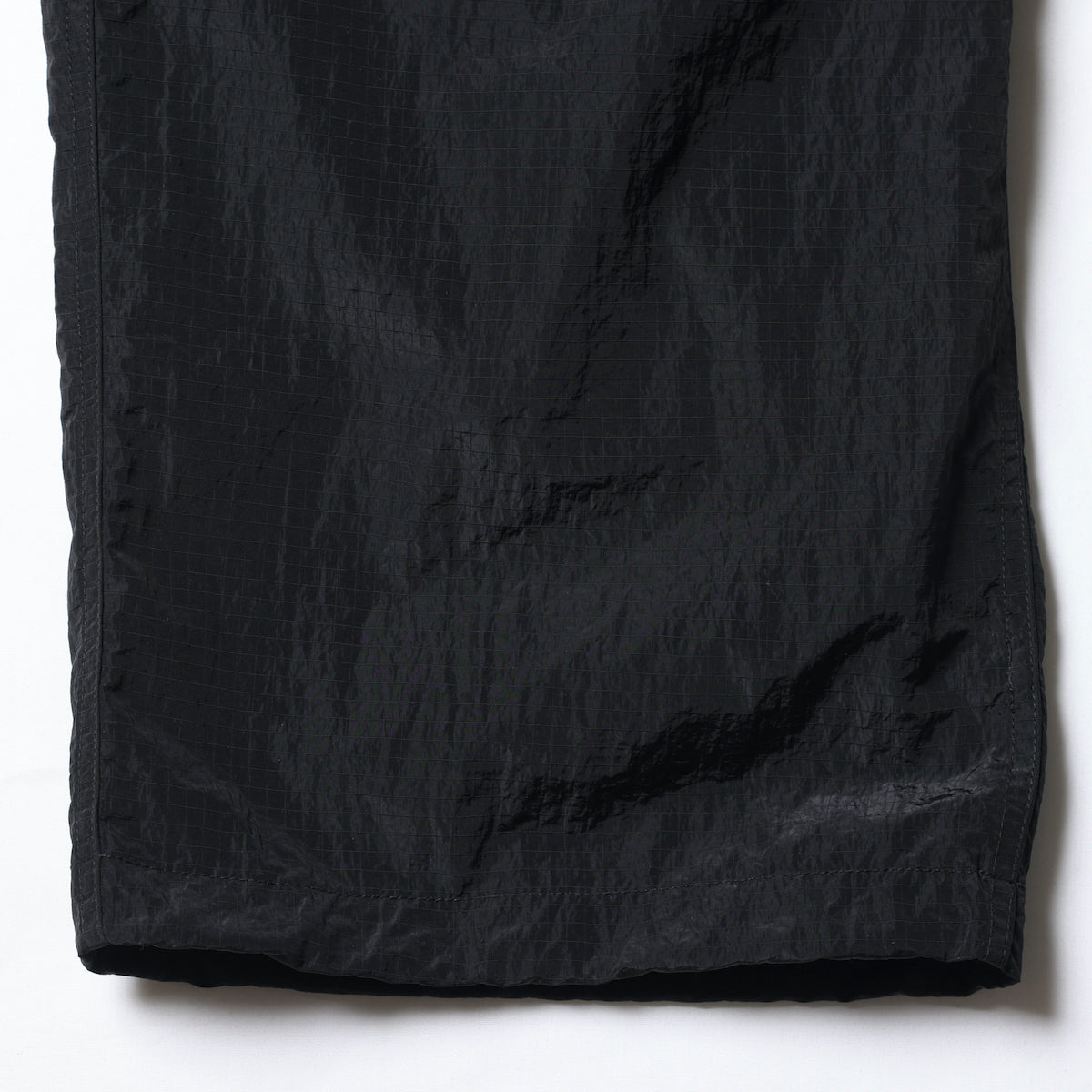 軽量な撥水リップストップ生地を使用したワイドカーゴパンツです。タック入りのボリュームのあるシルエットが特徴。
