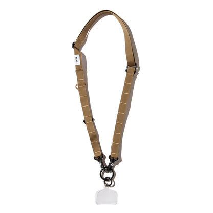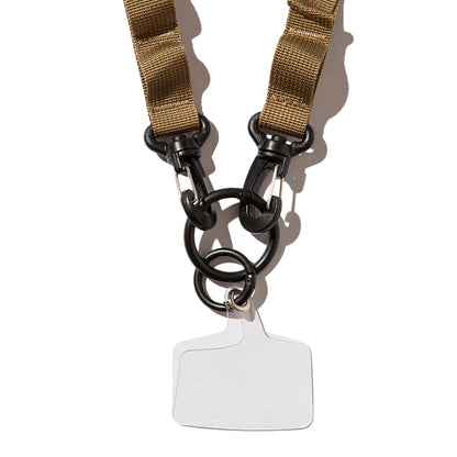 タフなナイロンテープにデイジーチェーンやDリング等を施して仕上げた「MILITARY MULTI SHOULDER STRAP」。一昨年リリースされた2ndタイプからは、ストラップを長めに調整できるようアップデートされた他、カラビナやフック等で引っ掛けるデイジーチェーンも増量。さらにO型のカラビナの先には、新しくスマホケースに装着できるアタッチメントを標準装備しているので、ストラップにスマホを直接装着する事も可能に。