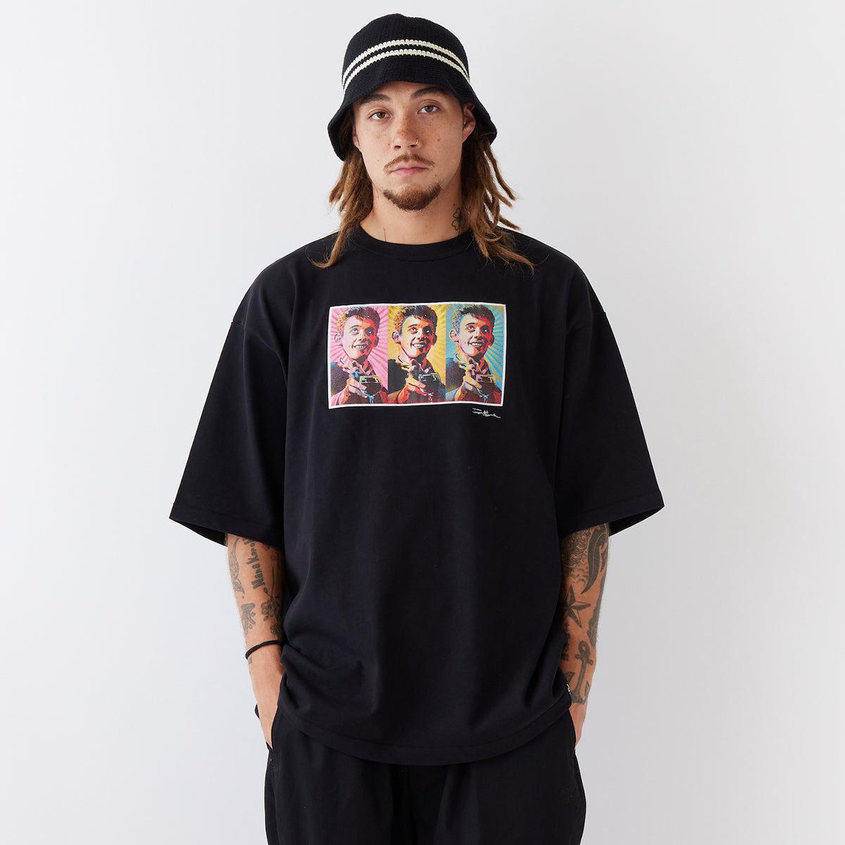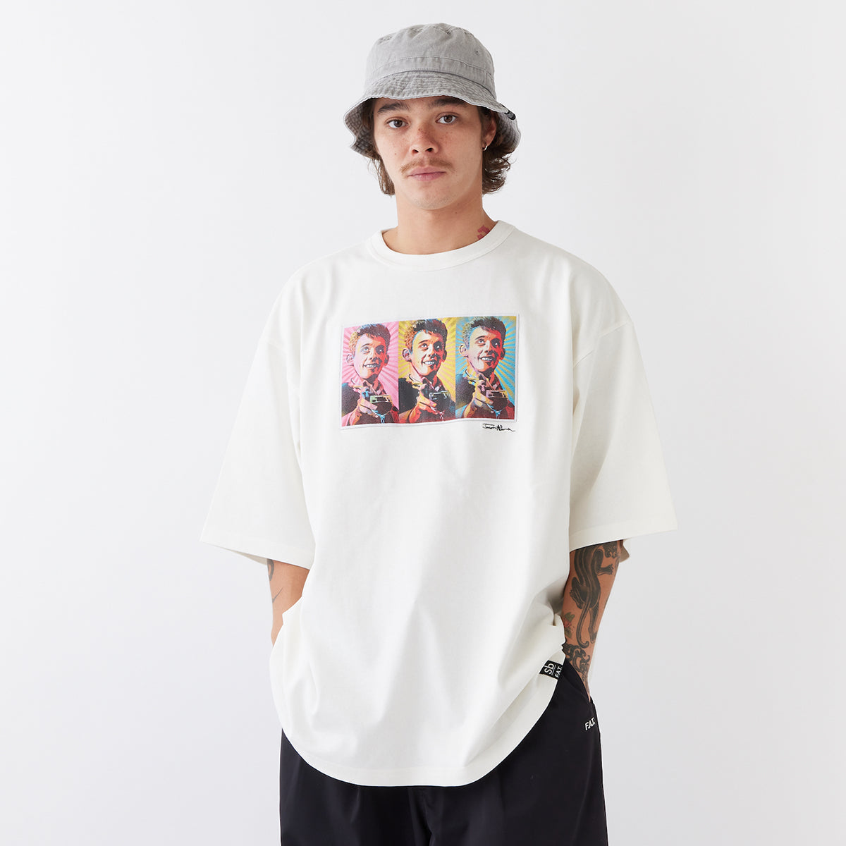 Jason Adams×Sb×F.A.T.のトリプルコラボによるカットソー。長年スケートシーンで活躍し、スラッピートリックを現在に蘇らせた立役者"Jason Adams"によるステンシルアートを、緻密なグラフィックネームとして表現。BIGシルエットのカットソーと組み合わせることで、F.A.T.らしいダイナミックな仕上がりになったアイテム。裾のSb×F.A.T.ネームも程よいアクセントに。Quality