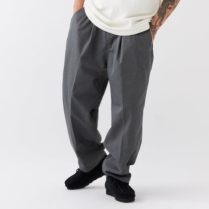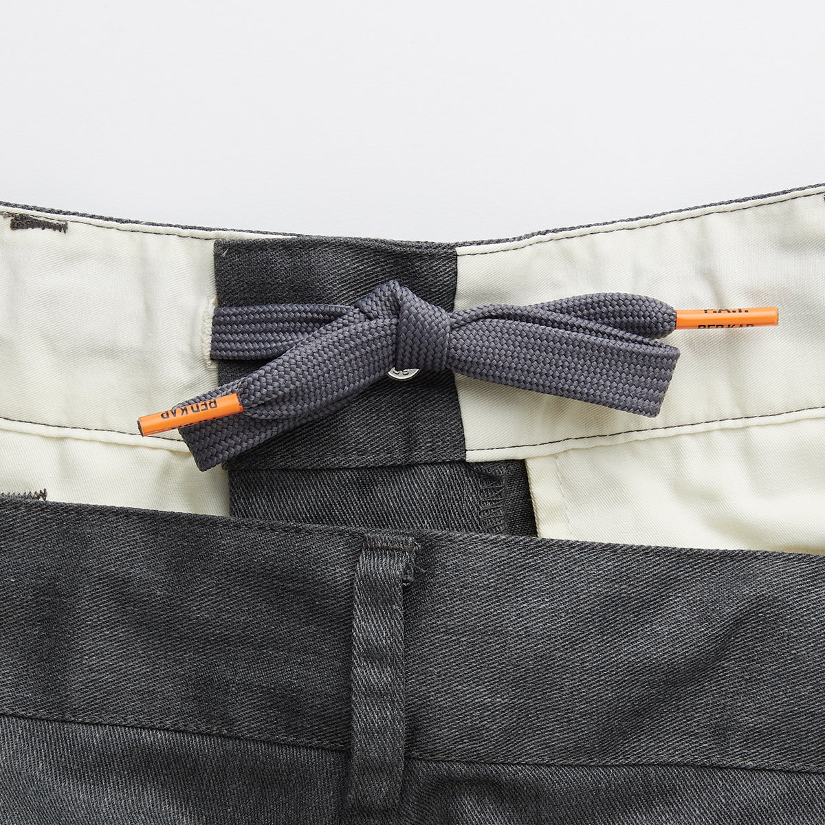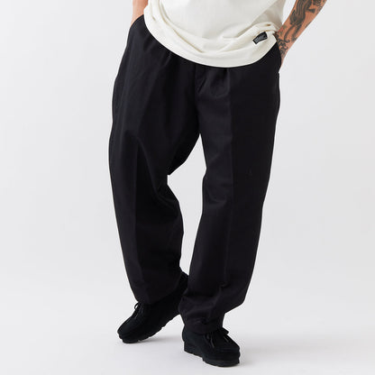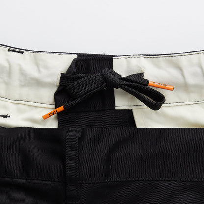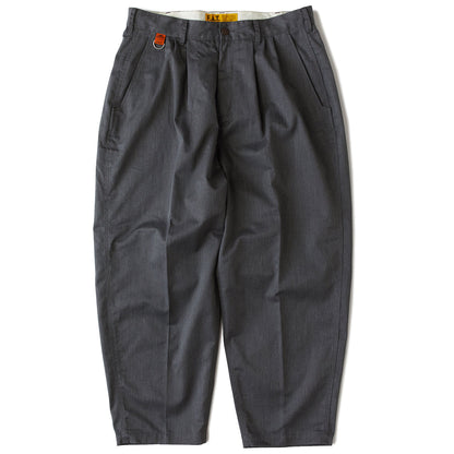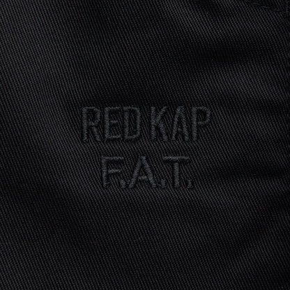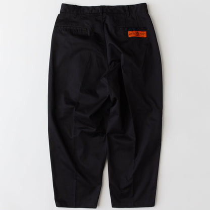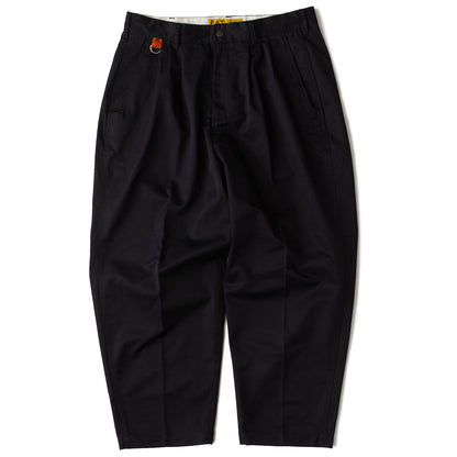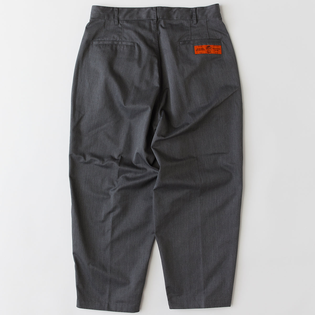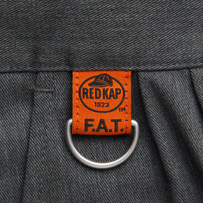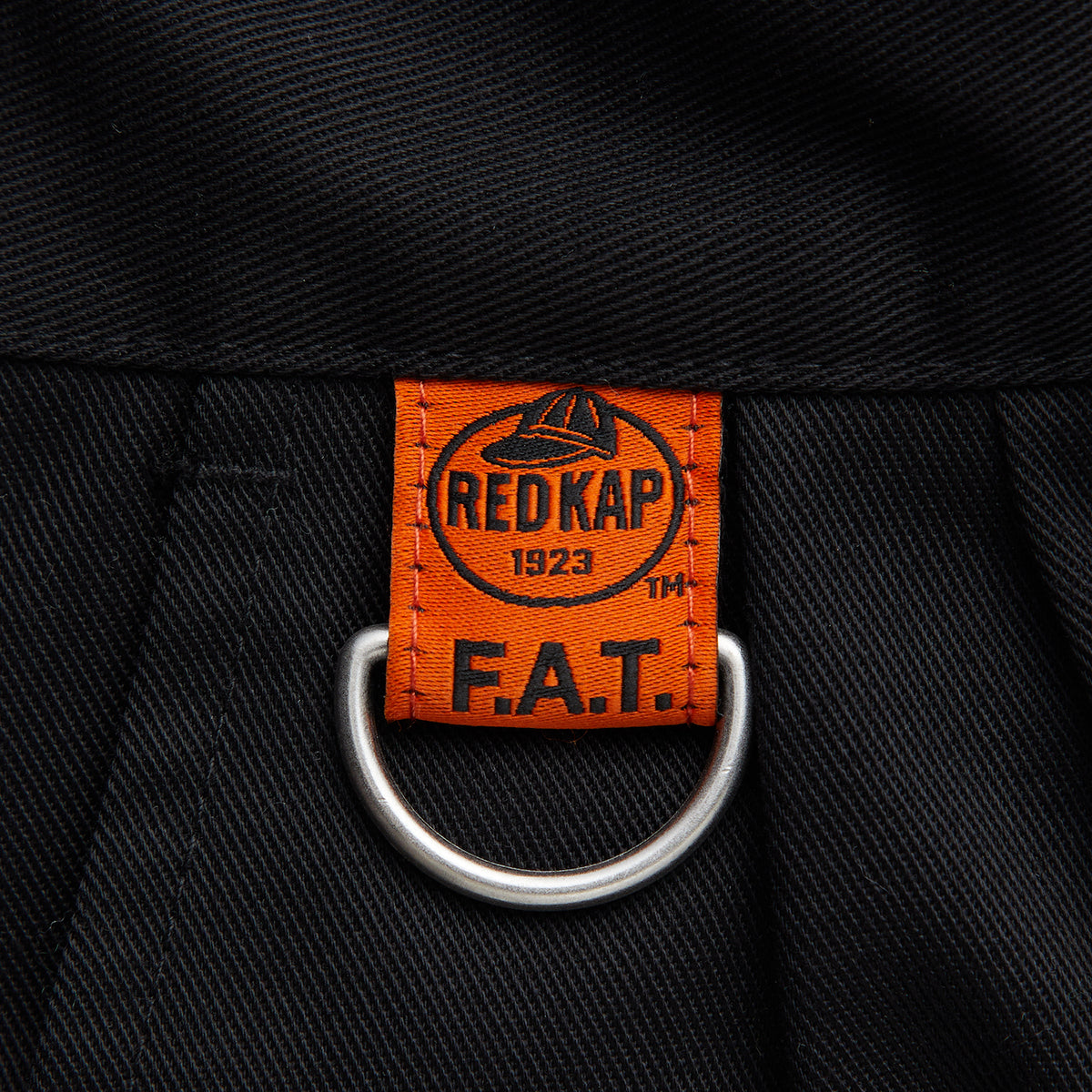 RED KAP×F.A.T.のコラボレーションによるワイドチノタイプパンツ。洗いのかかった柔らかなT/Cツイルを使用し、ヒップから膝にかけてボリュームを持たせたワイドテーパードに加え、ジャストレングスによる独特なシルエットが魅力。穿き心地の良さはもちろんのこと、右フロントのネームループにDリングを備えキーホルダーやカラビナを装着可能。ポケット下のロゴ刺繍、バックのネーム、ドローコード先端のロゴプリントなどこのコラボのためだけのデザインディテールも魅力。Quality