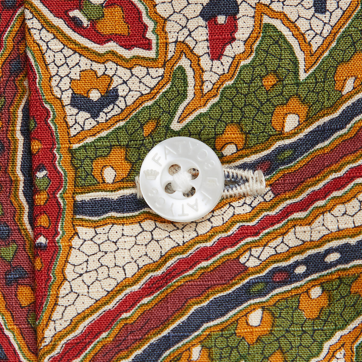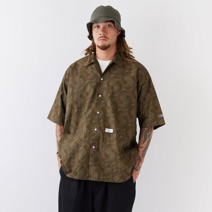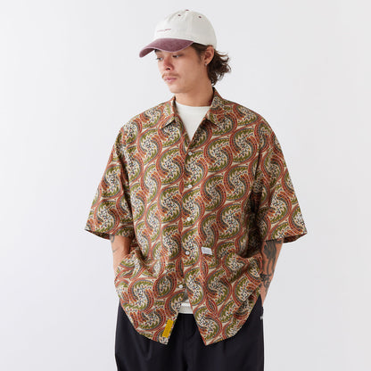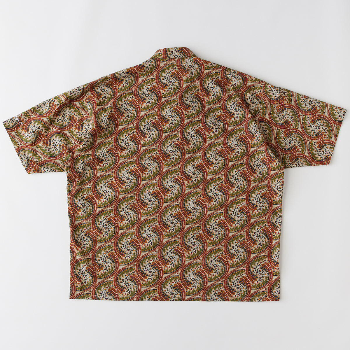独特なモザイクペイズリー柄が印象的な、イギリス・ロンドンのLIBERTYファブリックを使用したBIGシルエット半袖シャツ。程よい肉感のリップストップを採用し、腰ポケット仕様にすることでいつもとは違うカジュアルスタイルを楽しめるアイテム。袖のロゴ刺繍や裾に隠れたブランドネームもさり気なく主張してくれる。Quality