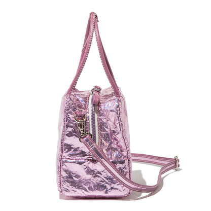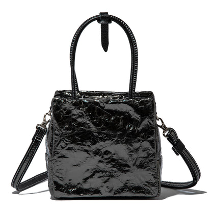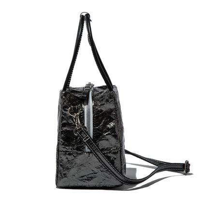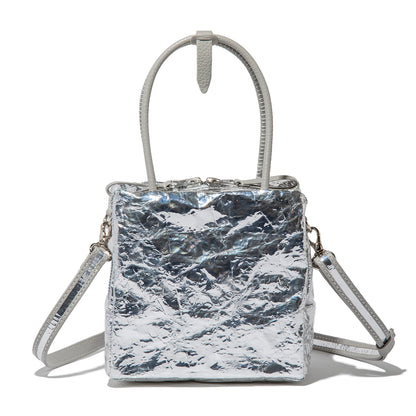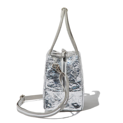口開きが良く、コロンとしたスタイルが可愛いスタイリッシュな2WAYバッグ。大手ハイブランドが取引するイタリアの素材メーカーが開発した素材(アルミにポリエステルコーティング)を使用。
