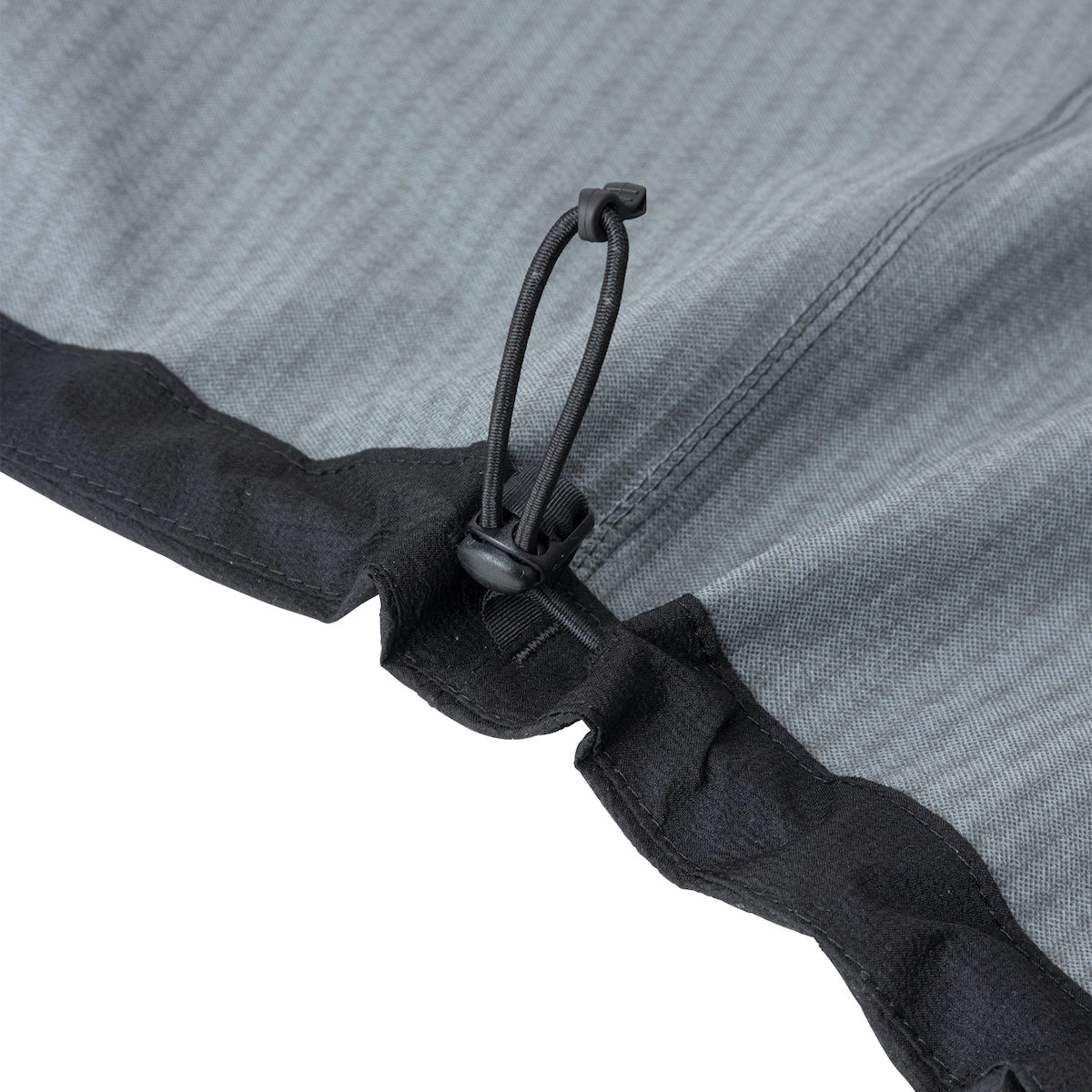 防水透湿性に優れた2.5層構造のハイベントを使用した袖付きの防水ポンチョが、日常生活に使いやすくアップデート。背面に配置したベンチレーションと、胸ポケットの袋布にメッシュを使用することで、蒸し暑い時期でも衣服内のムレを効率的に放出します。細かな凹凸のプリントを施した裏地は肌離れがよく、ドライ感をキープ。両胸のファスナーポケットはアクセスのしやすい斜め配置で、フラップによって雨風が入りにくい仕様です。フロントもダブルフラップで防水性を向上。