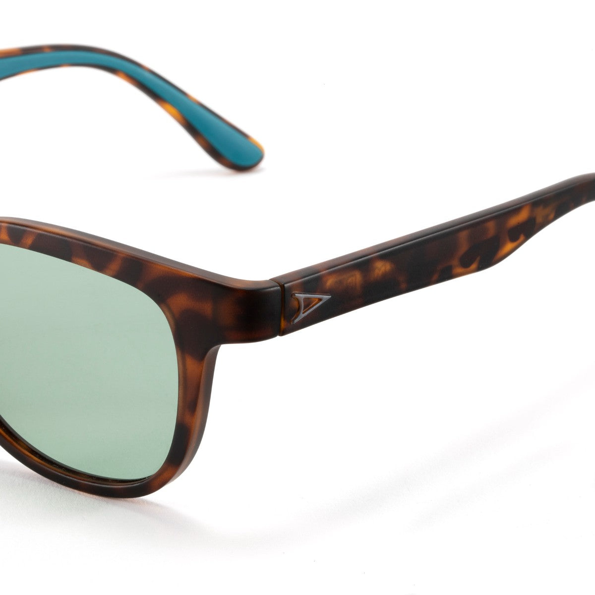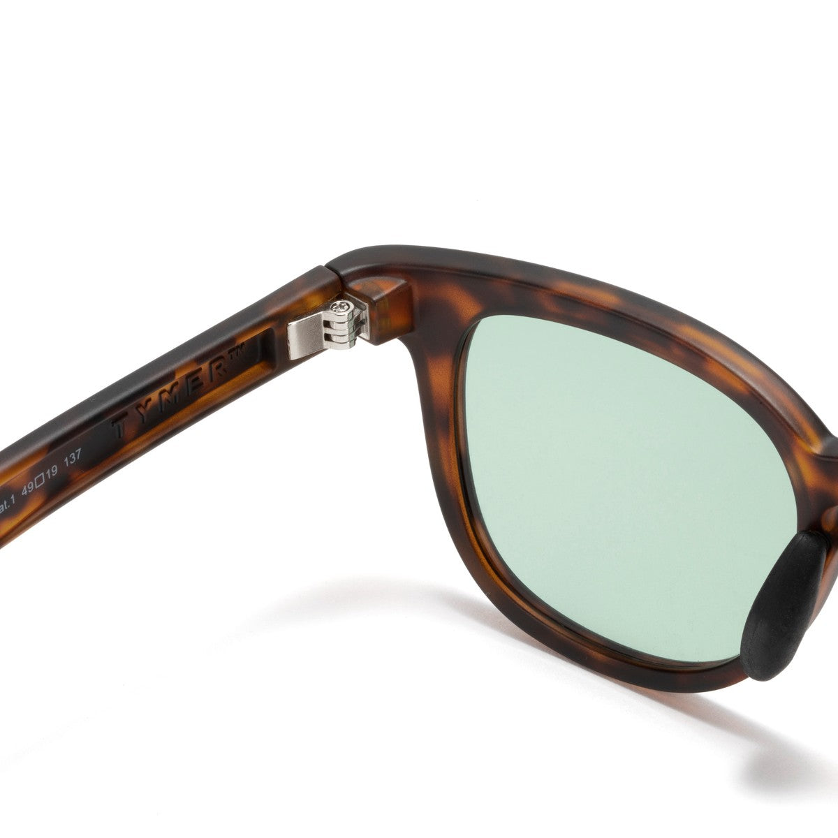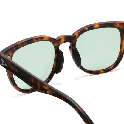 ボストンとウェリントンを掛け合わせた絶妙なシェイプはシンプルながらもモダンな仕上がりに。絶妙なサイズ感により性別やスタイルを問わないモデルです。フレームはトートイス(べっ甲)、レンズは眩しさを抑えつつ目元を彩るライトグリーン。-
