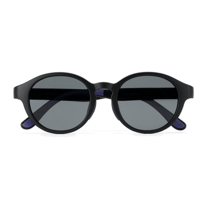 ELIOT(TY100)のボストンシェイプに比べレンズ上部にも丸みを持たせたラウンドタイプのニューフレーム。フレーム自体も細身に仕上げてエッジを抑えたプレーンな印象で男女問わず、スポーツ・ファッションにもコーディネートしやすいデザイン。ノーズ幅も全モデル中一番Narrowに設定しているので鼻梁が高くない方にもフィットしやすいモデルです。フレームはマットブラック、レンズは反射光をカットし視界をクリアに見やすくする偏光レンズ。-