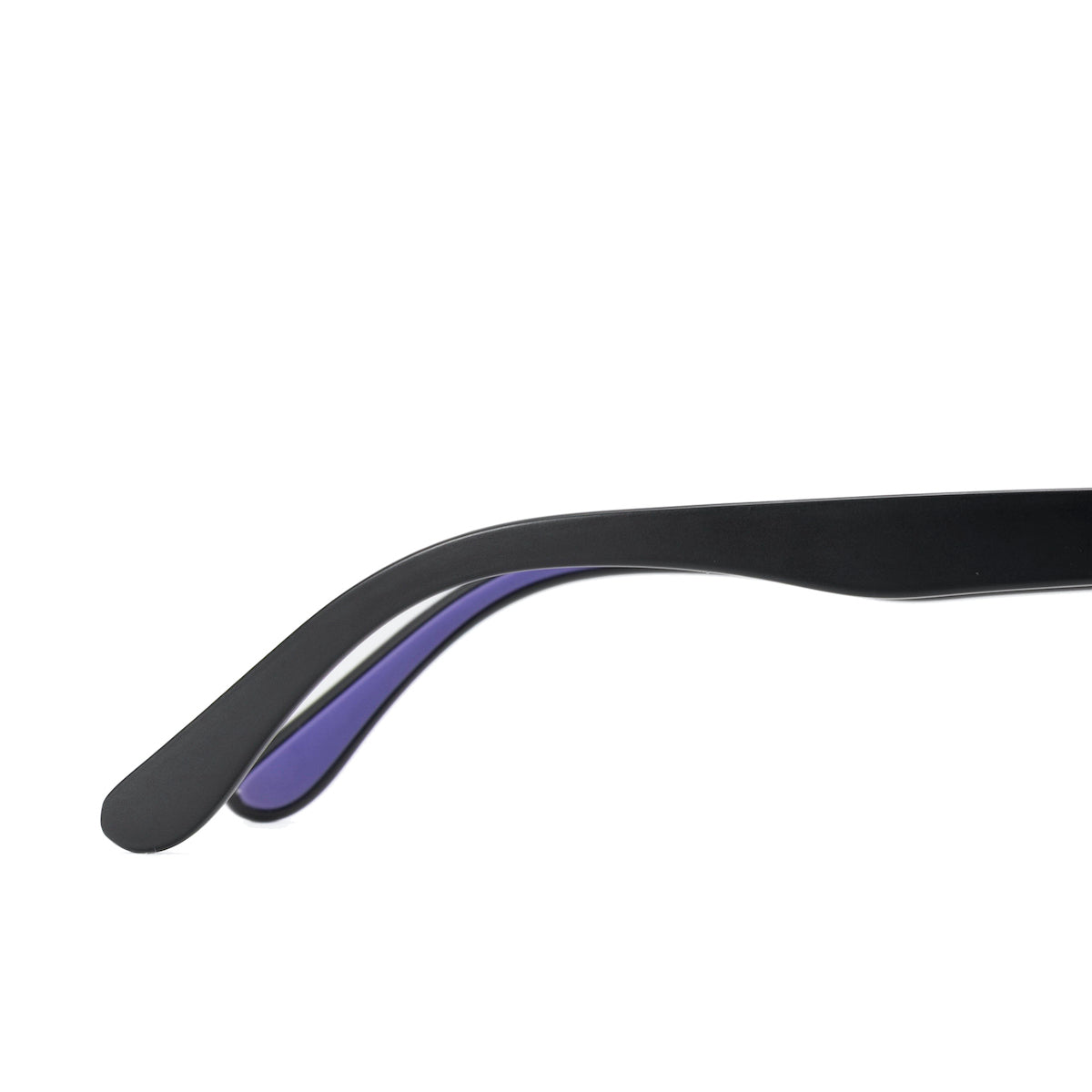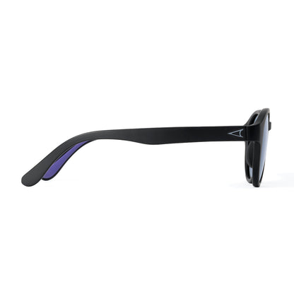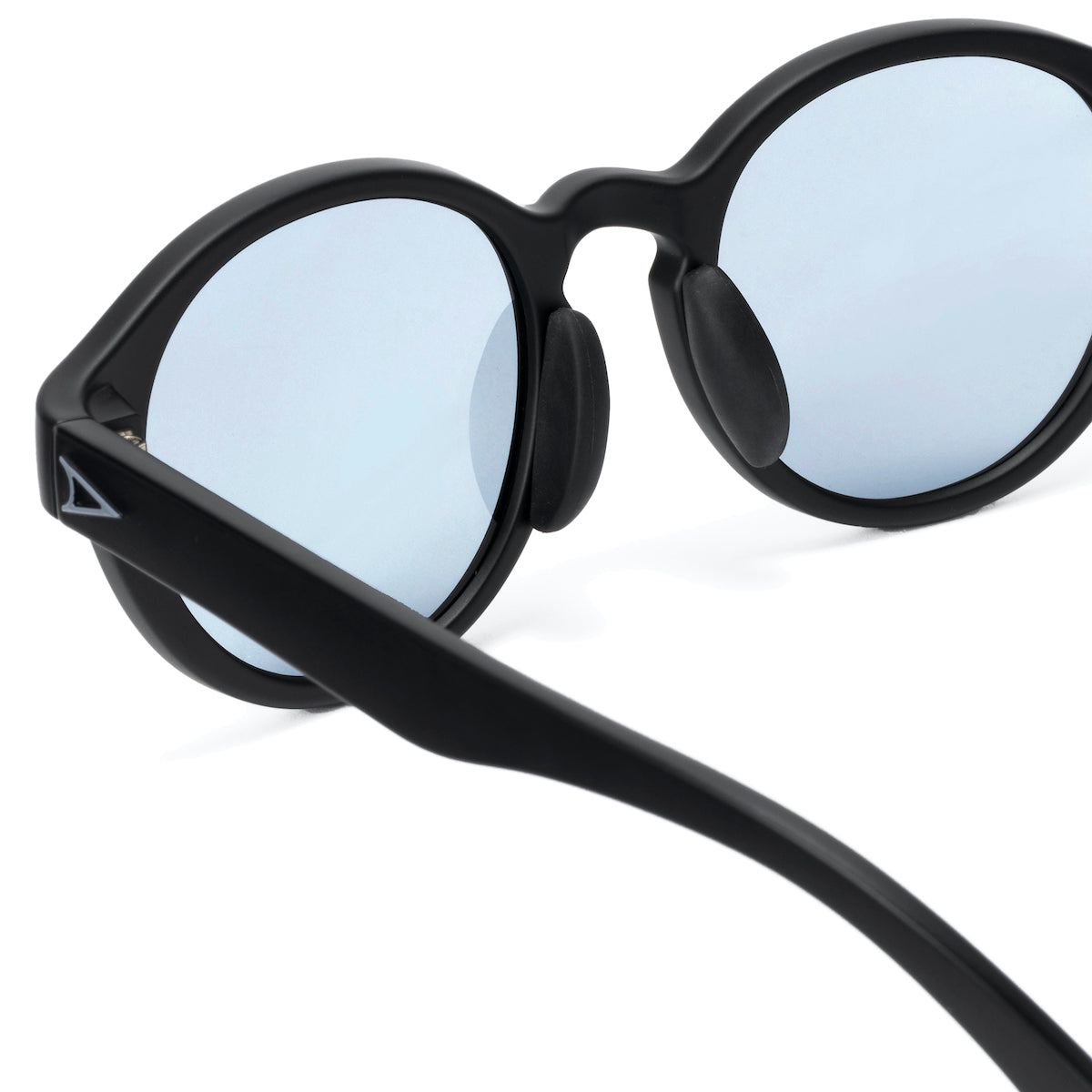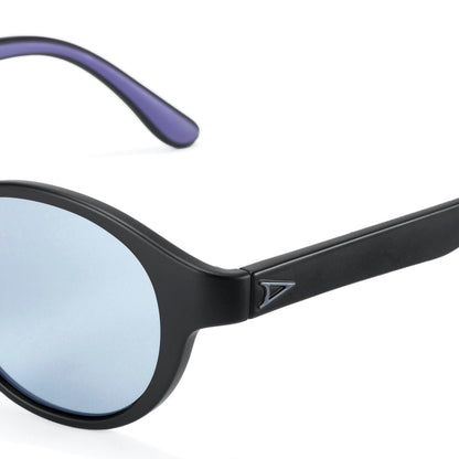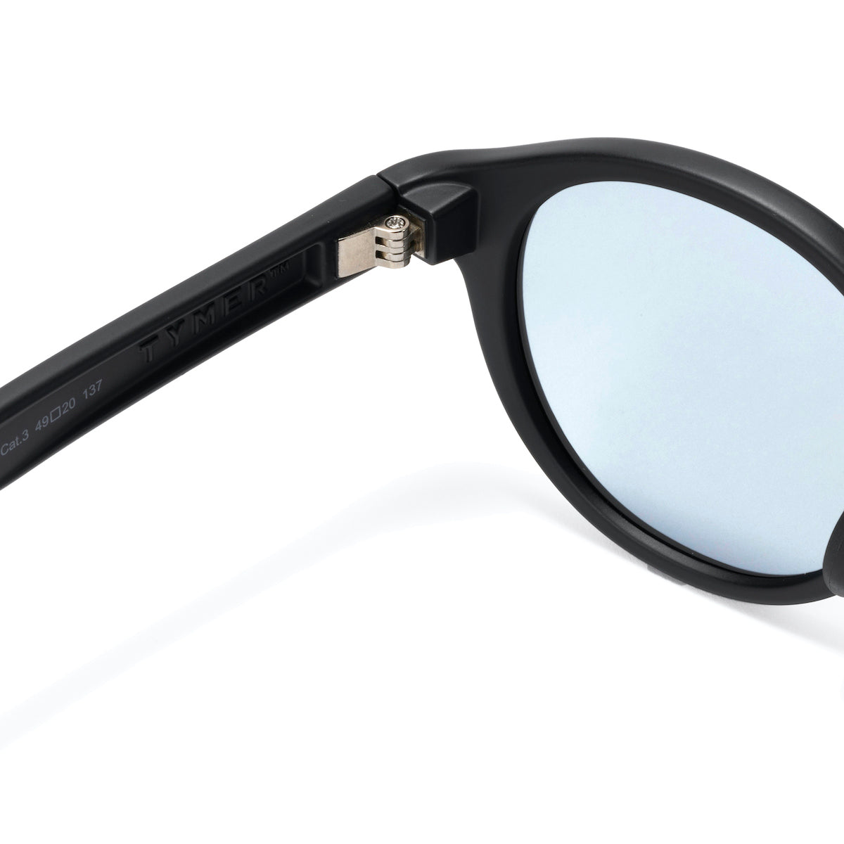 ELIOT(TY100)のボストンシェイプに比べレンズ上部にも丸みを持たせたラウンドタイプのニューフレーム。フレーム自体も細身に仕上げてエッジを抑えたプレーンな印象で男女問わず、スポーツ・ファッションにもコーディネートしやすいデザイン。ノーズ幅も全モデル中一番Narrowに設定しているので鼻梁が高くない方にもフィットしやすいモデルです。フレームはマットブラック、レンズは眩しさを抑えつつ目元を彩るライトブルー。-