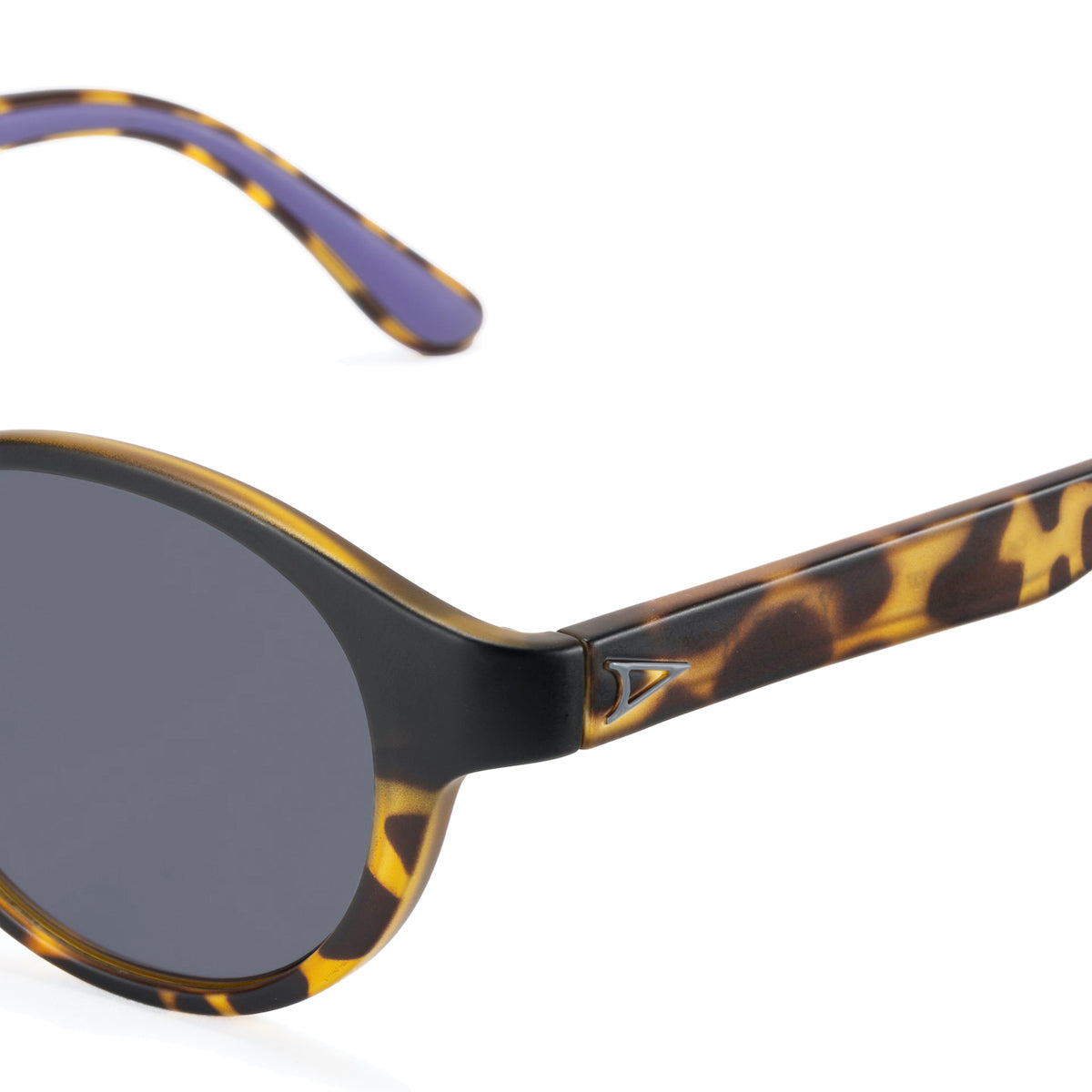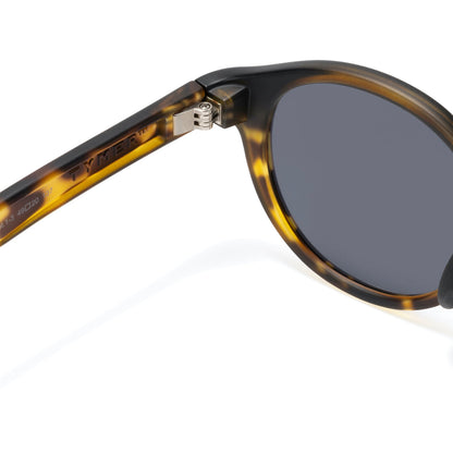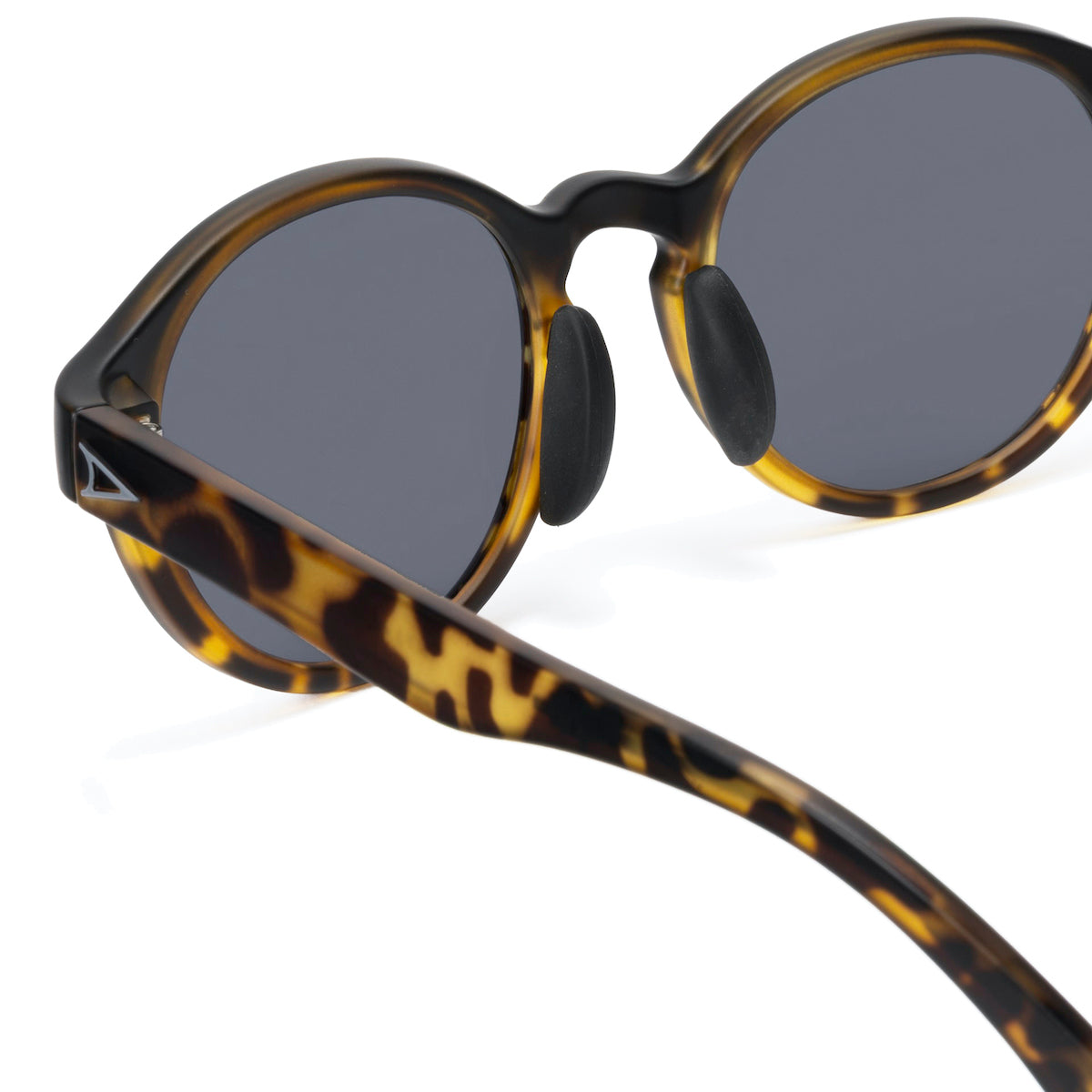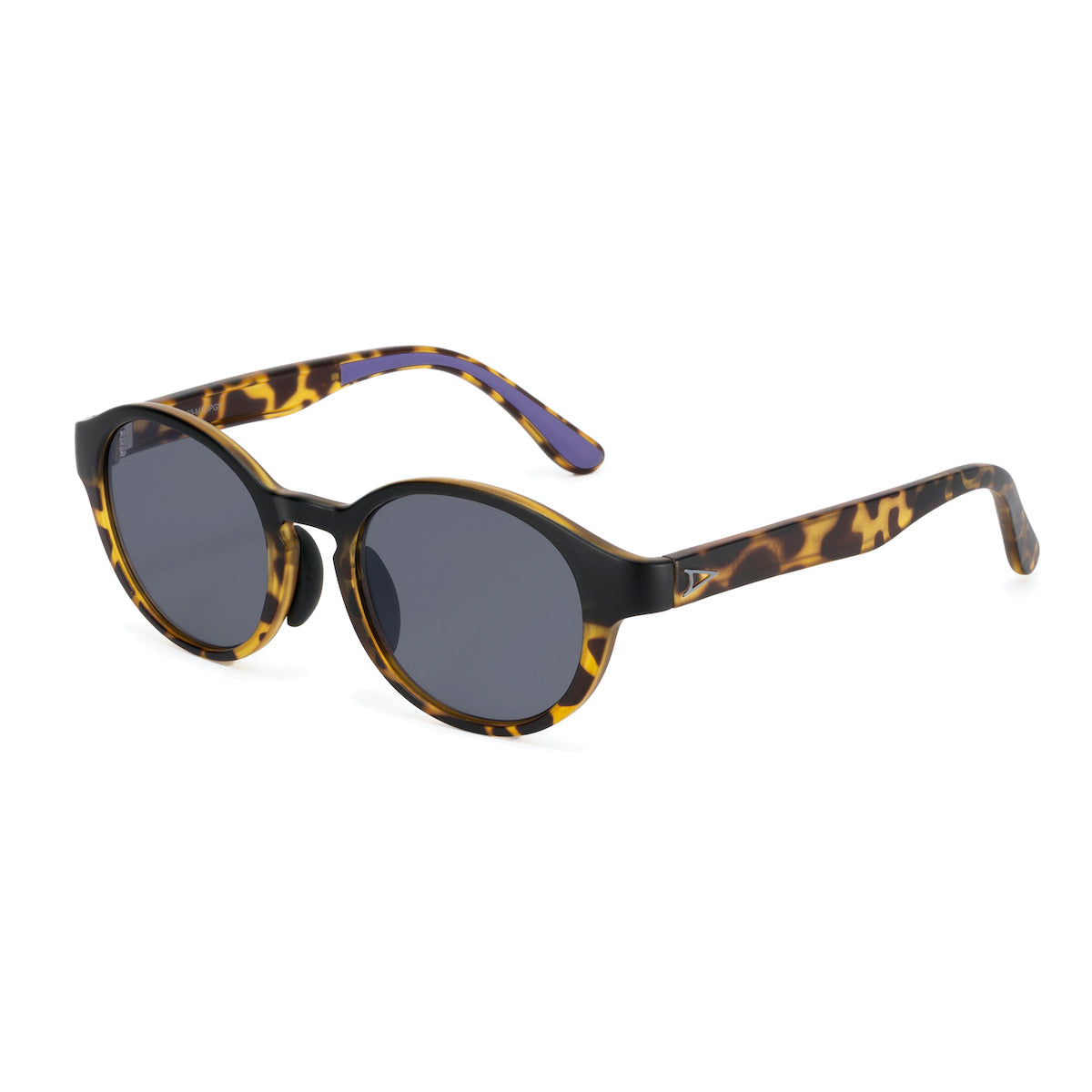 ELIOT(TY100)のボストンシェイプに比べレンズ上部にも丸みを持たせたラウンドタイプのニューフレーム。フレーム自体も細身に仕上げてエッジを抑えたプレーンな印象で男女問わず、スポーツ・ファッションにもコーディネートしやすいデザイン。ノーズ幅も全モデル中一番Narrowに設定しているので鼻梁が高くない方にもフィットしやすいモデルです。フレームはトートイス(べっ甲)、レンズは強い日差しでも眩しさを軽減するグレー。-