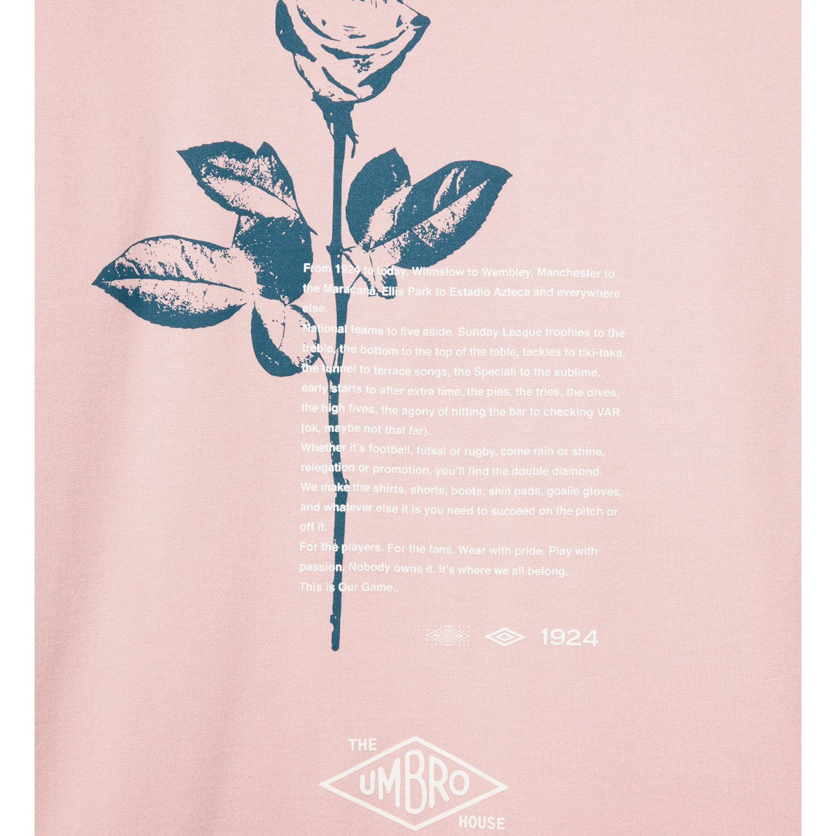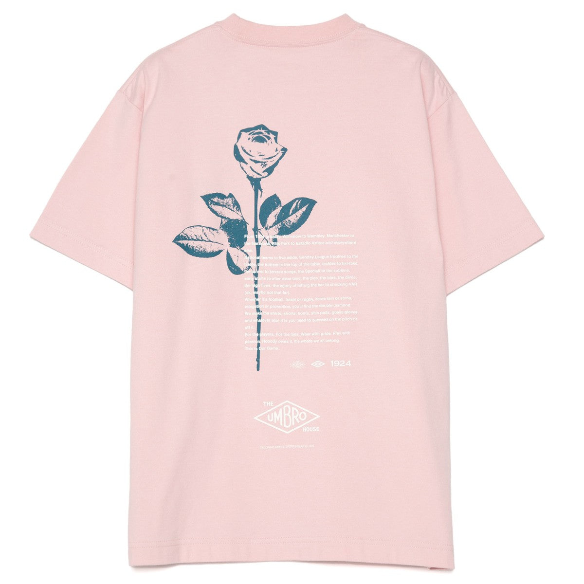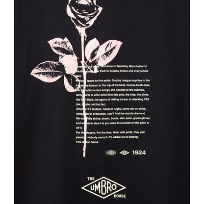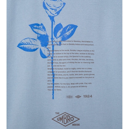 バックプリントにイギリスの国花であるバラを大胆にデザインしたTシャツ。フロントには「UMBROHOUSE」のロゴを刺繍で配置し、上品なアクセントをプラス。