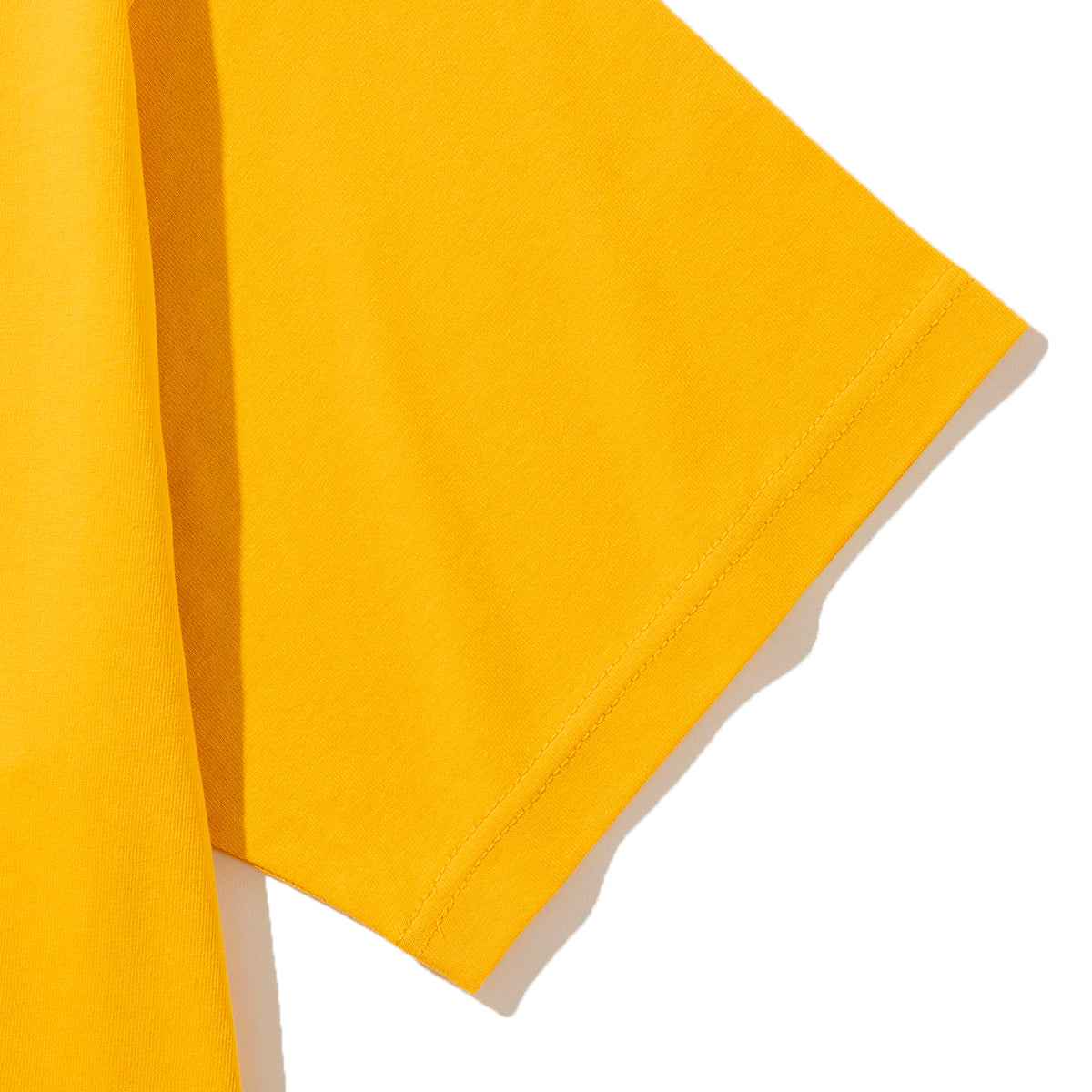 ボディには空気を含んだオープンエンド糸を高密度に編み立てドライタッチな質感の生地を採用。洗いこむほどに粗野感が強まり、縮みや型崩れの少ないのが特徴的な1枚。