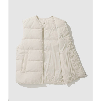 シンプルなデザインで幅広いシーンで着用可能な薄手のダウンベスト。【素材】ナイロン100%