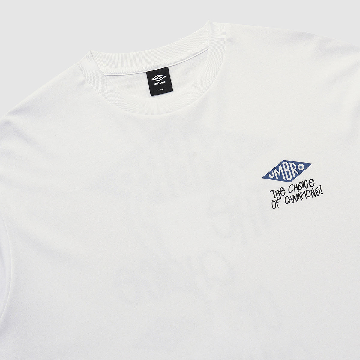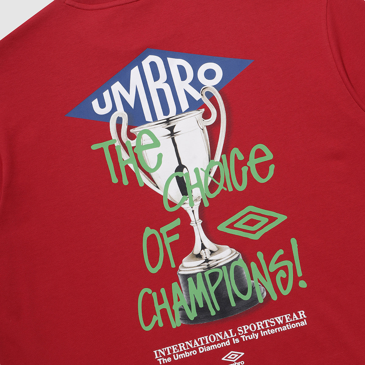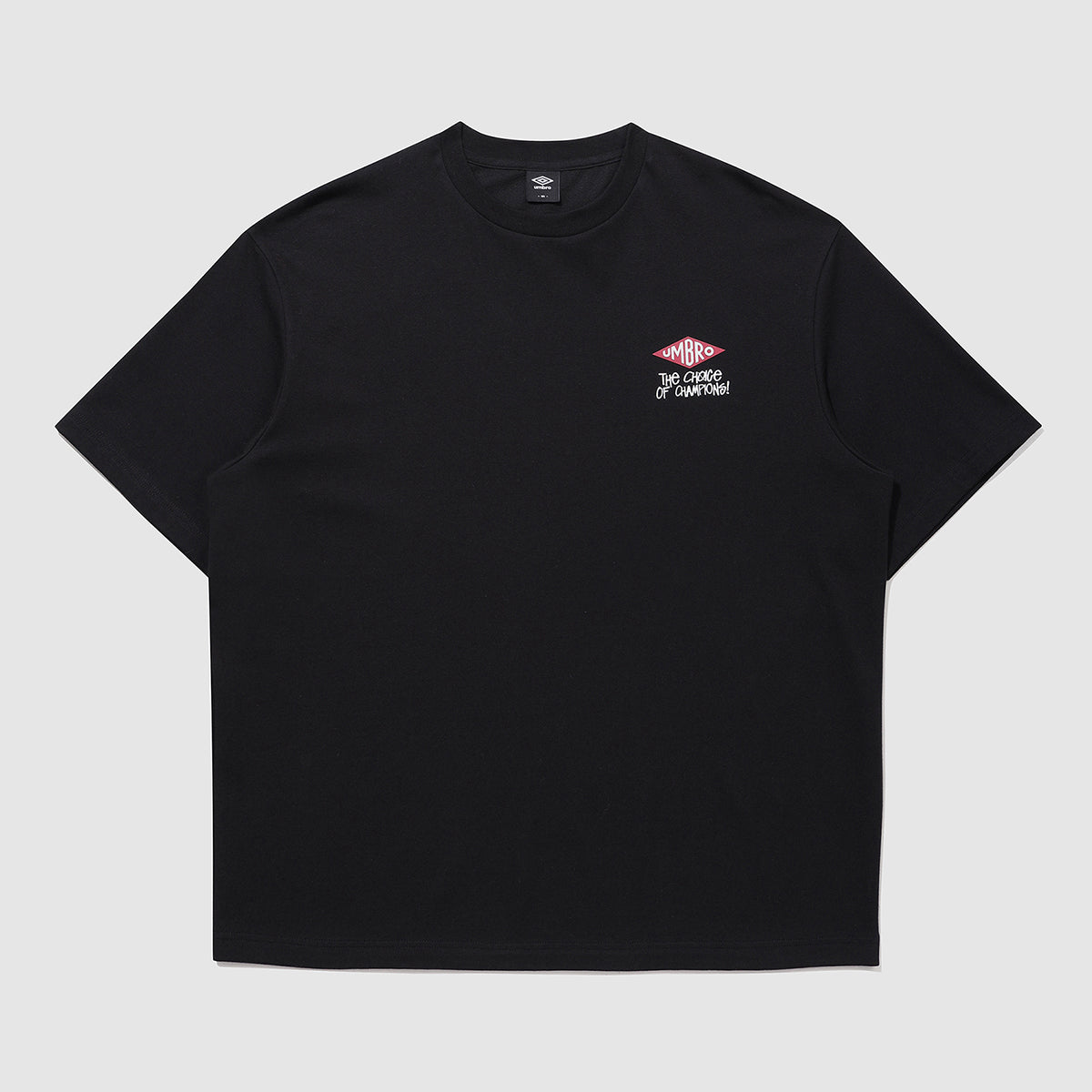アンブロアーカイブの「トロフィー」からインスピレーションを得たグラフィック半袖Tシャツ。オーバーフィットシルエットと背面のアートワーク配置でストリートなムードを演出。