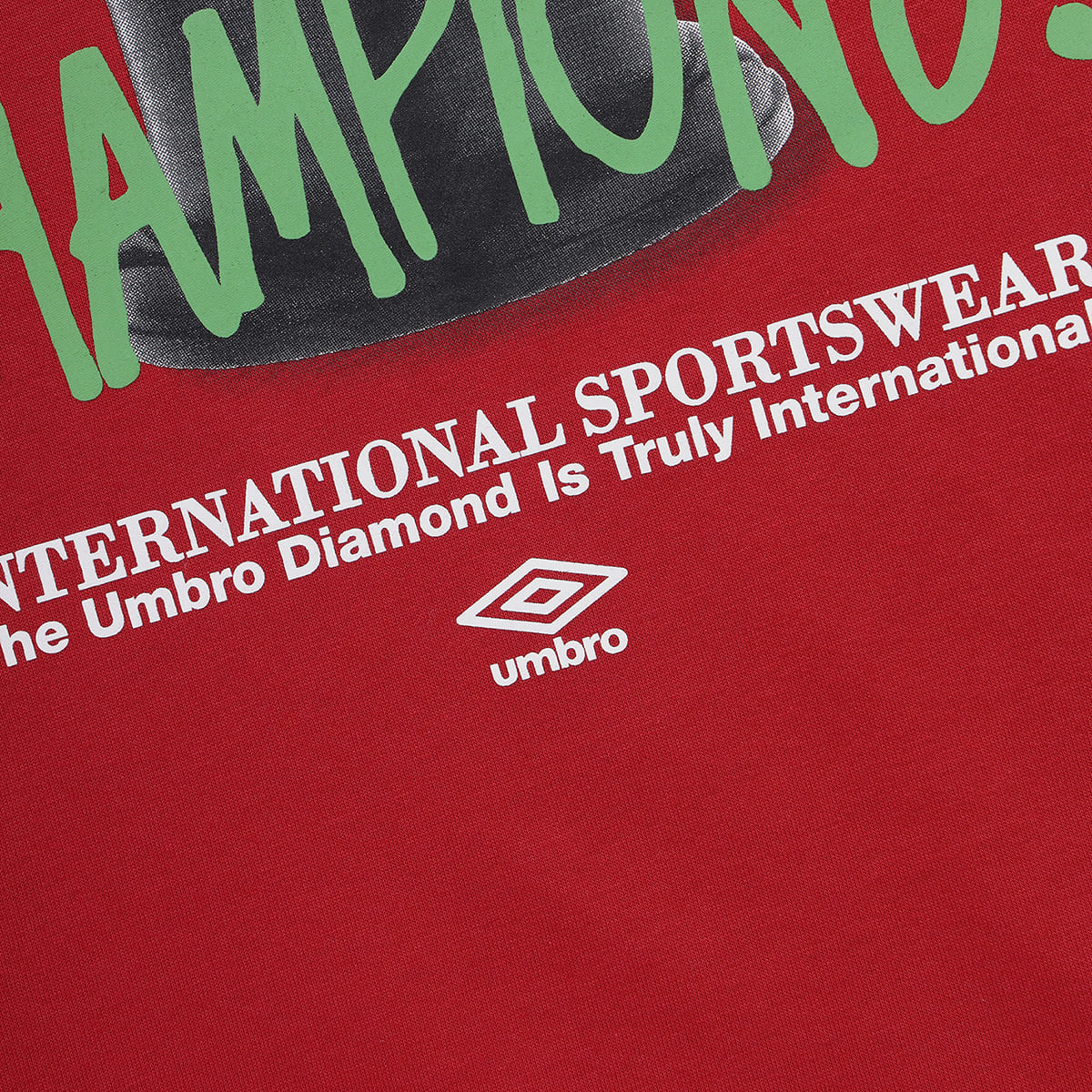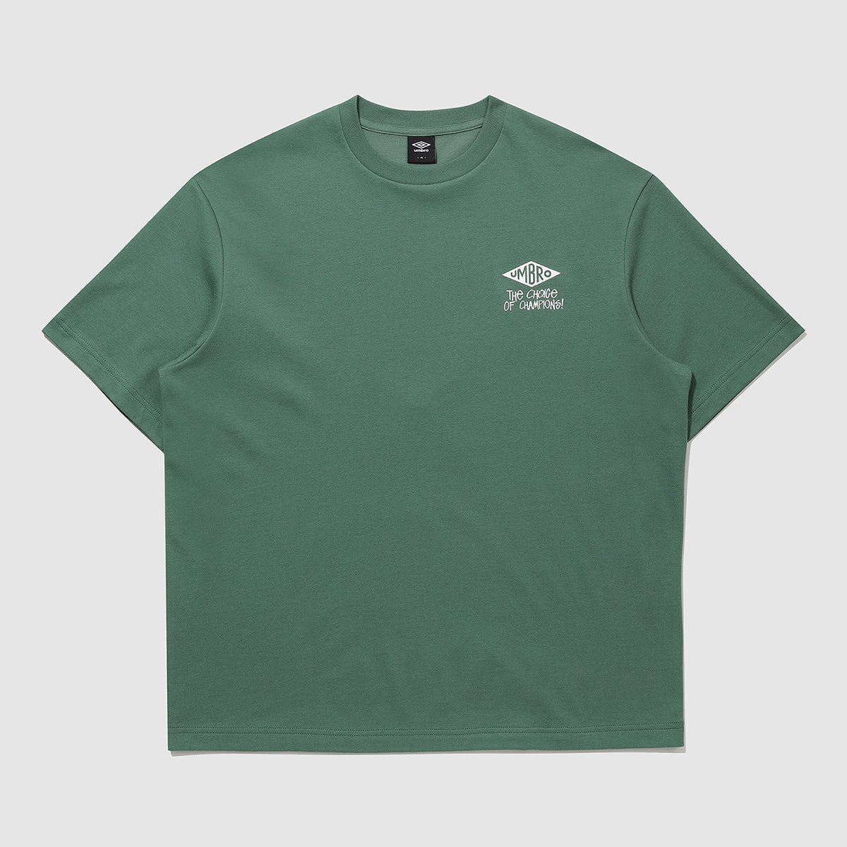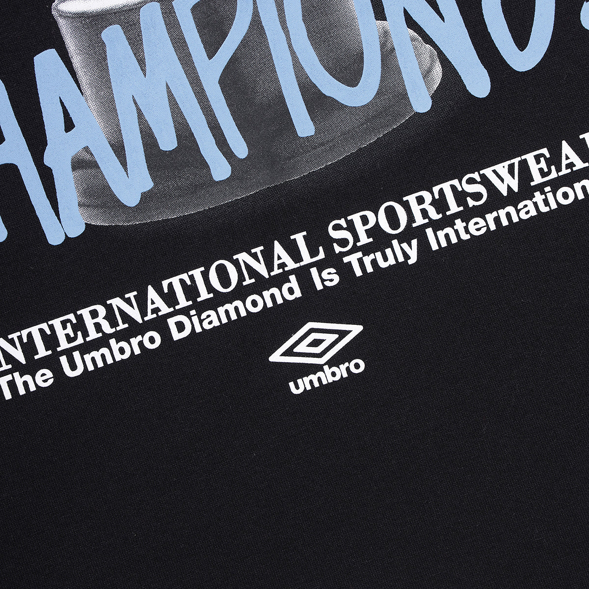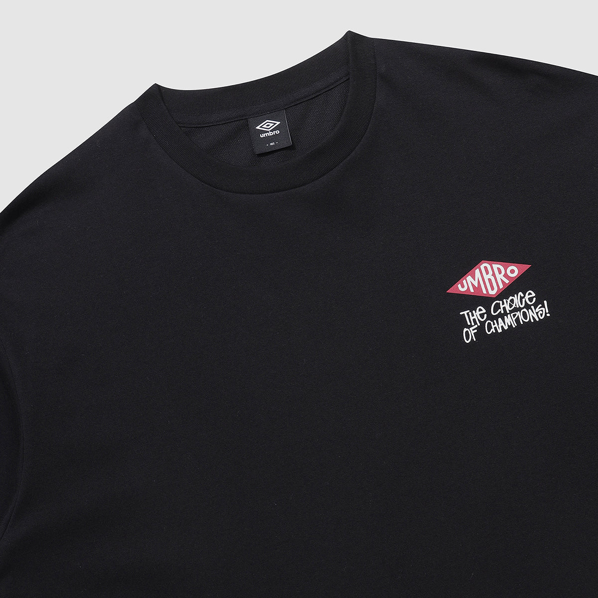 アンブロアーカイブの「トロフィー」からインスピレーションを得たグラフィック半袖Tシャツ。オーバーフィットシルエットと背面のアートワーク配置でストリートなムードを演出。